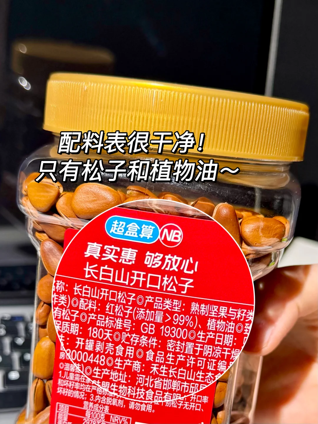 配料表也很干净,只有松子和植物油!