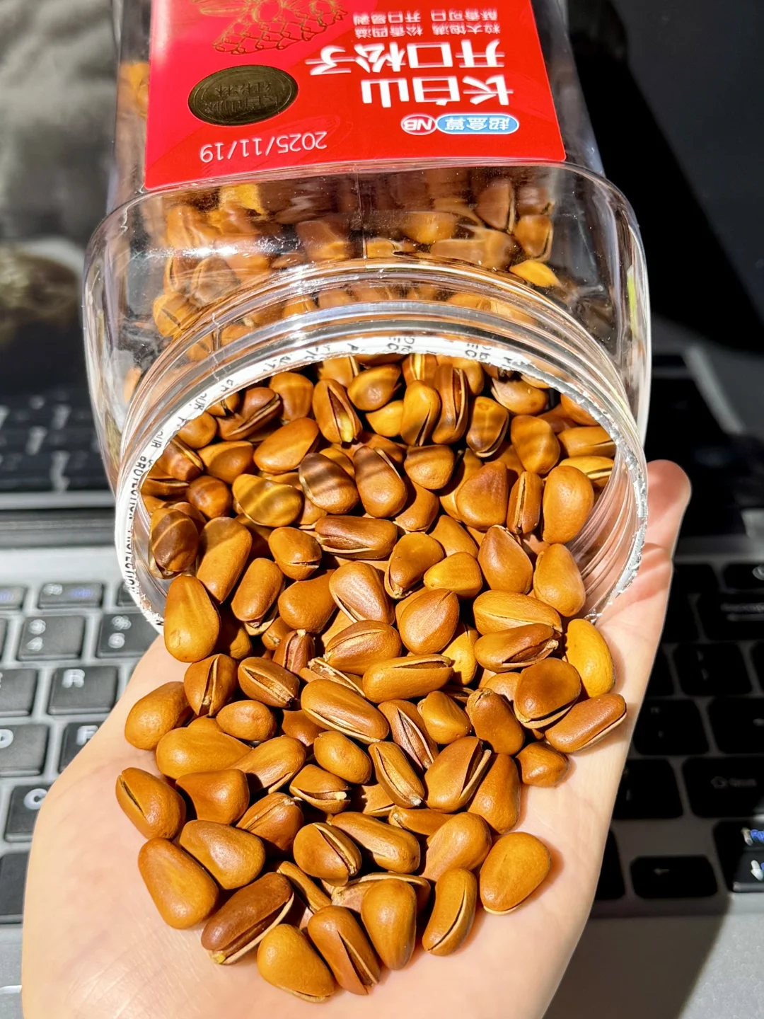 随手在超盒算NB买的开口松子!!
