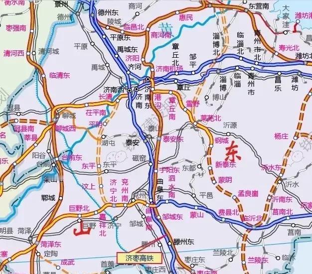 济枣高铁仅定位济南→枣庄?太肤浅了!一提到济枣高铁,大家都认为与京沪高铁距离较近且平行,没有必要建设,是浪费资源!真的是这样吗? 宁阳东站的站台边缘与京沪高铁线的铁轨间距不足1公里,站台上的信号灯甚至能与京沪线列车的灯光隔空呼应——这是很多人质疑“线路重复”的直观理由。 曲阜东站的站场规划图上,济枣高铁的轨道与京沪高铁的站台通过一组渡线连接,却被设计成独立的“场段”运营;滕州东站的扩建工程里,新增的济枣场与既有京沪场共用进站通道,却指向不同的调度中心。 有人说,共站设计只会让两条线路的功能更趋同。但翻开山东省《综合立体交通网规划》,济枣高铁的南延线路正悄然推进——从枣庄站引出,向东接入新沂后,可衔接京沪二线;若从台儿庄站延伸,则能直连临沂北站,打通鲁南至苏北的横向通道。 向北的布局同样暗藏深意。济南东站的咽喉区,济枣高铁与济滨高铁的联络线已完成铺轨,未来列车可通过这条线路直达滨州,再接入京沪二线北上天津;而与石济客专的衔接设计,则让济枣线具备了向西延伸至石家庄的可能。 当济枣高铁南延接入沿海高铁、北伸打通鲁北通道,它与京沪高铁的差异便清晰起来:京沪线是贯穿南北的“主动脉”,承担着北京至上海的长途跨区客流;济枣线则是山东内部的“毛细血管”,串联起济南、泰安、枣庄等城市,再通过延伸线路辐射鲁南、鲁北与沿海地区。 这种差异带来的实际价值正在显现。鲁南地区的旅客若前往日照、连云港,无需再绕行徐州转入京沪线,可直接通过济枣南延段进入沿海高铁,行程缩短近1小时;鲁北的滨州、东营居民南下枣庄,也不必借道济南枢纽,济枣北伸段将成为更快捷的选择。 把济枣高铁仅看作济南到枣庄的短途线路?或许我们忽略了高铁网络的真正逻辑——一条线路的价值,从来不止于起点与终点的距离,更在于它能“触达”多少个方向。就像宁阳东站那不足1公里的间距,隔开的不只是两条铁轨,更是两种完全不同的辐射未来。