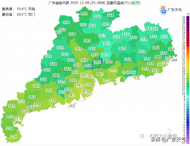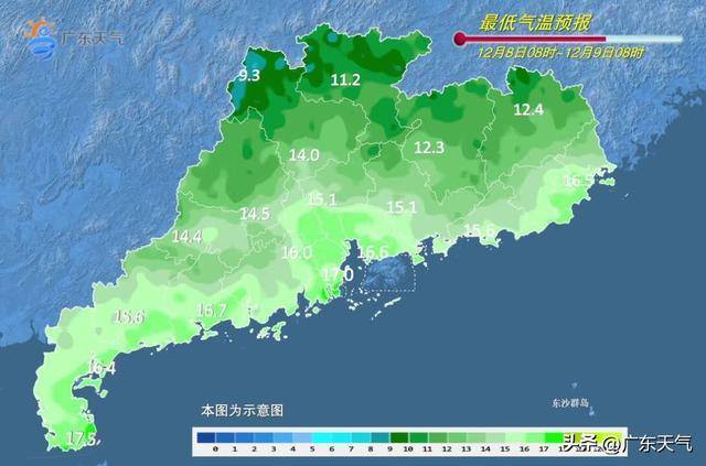 今天(12月8日)早晨全省大部最低气温上升,肇庆、云浮、梅州等市县局部出现了雾。
