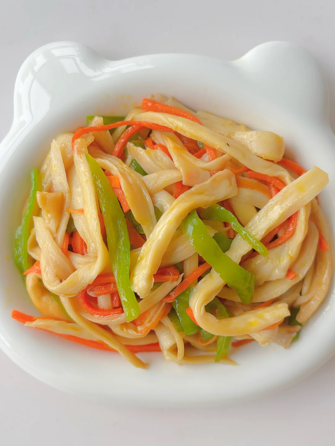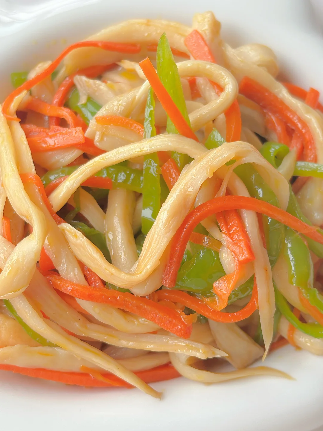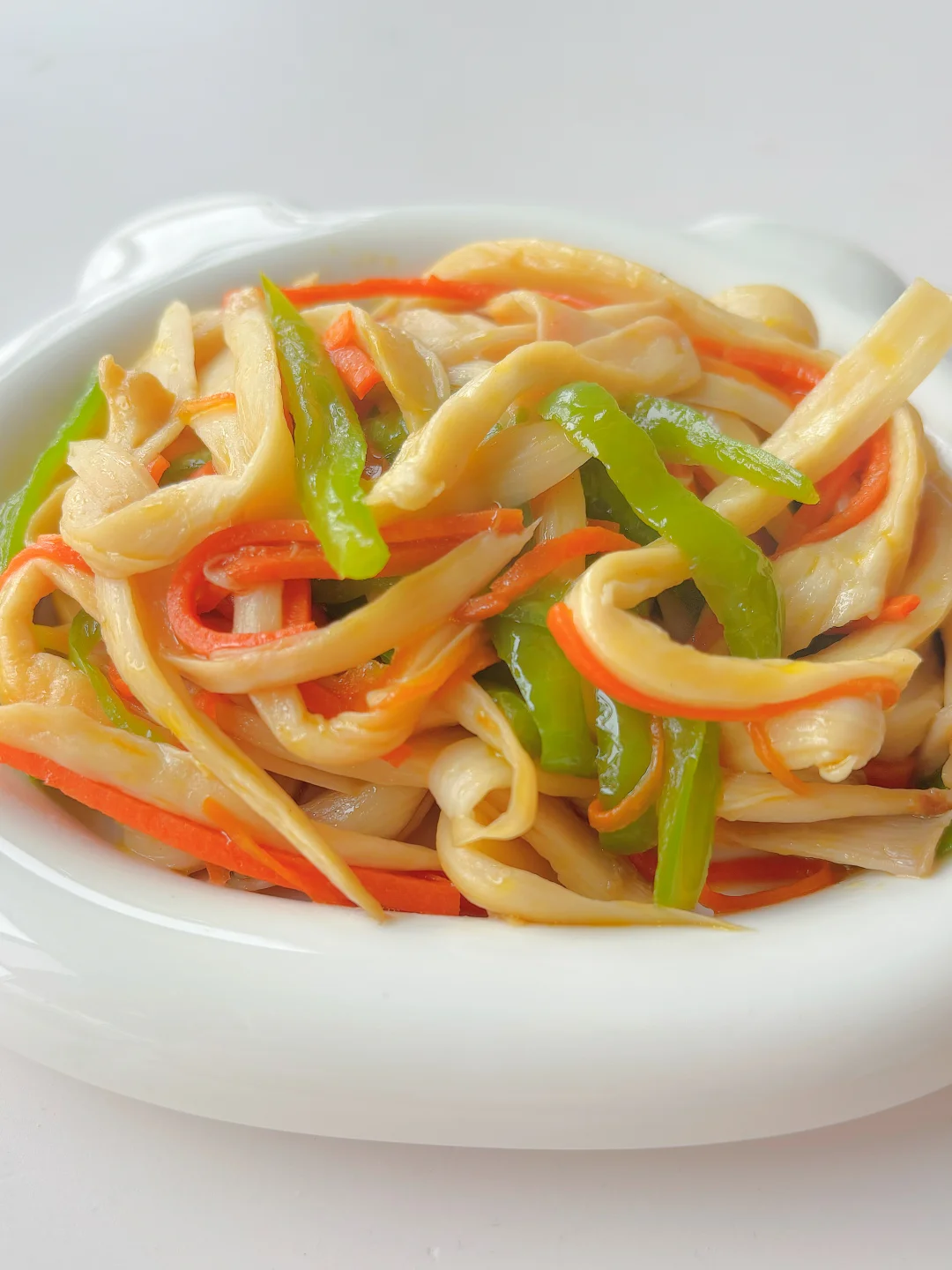 🌈鲜香可口,营养下饭,宝宝爱吃菌菇的赶紧安排吧~ 🎈准备食材: 1️⃣杏鲍菇两个,不辣的青椒一个,胡萝卜一段; 🎈制作步骤: 1️⃣ 杳鲍菇撕成条,胡萝卜和青椒切丝,杳鲍菇焯水后备用; 2️⃣热锅倒油,爆香蒜片,倒入胡萝卜炒软,再放入青椒丝炒至断生,放入杏鲍菇炒匀; 3️⃣最后加入少许生抽和盐,翻炒均匀即可,全程中火哦~