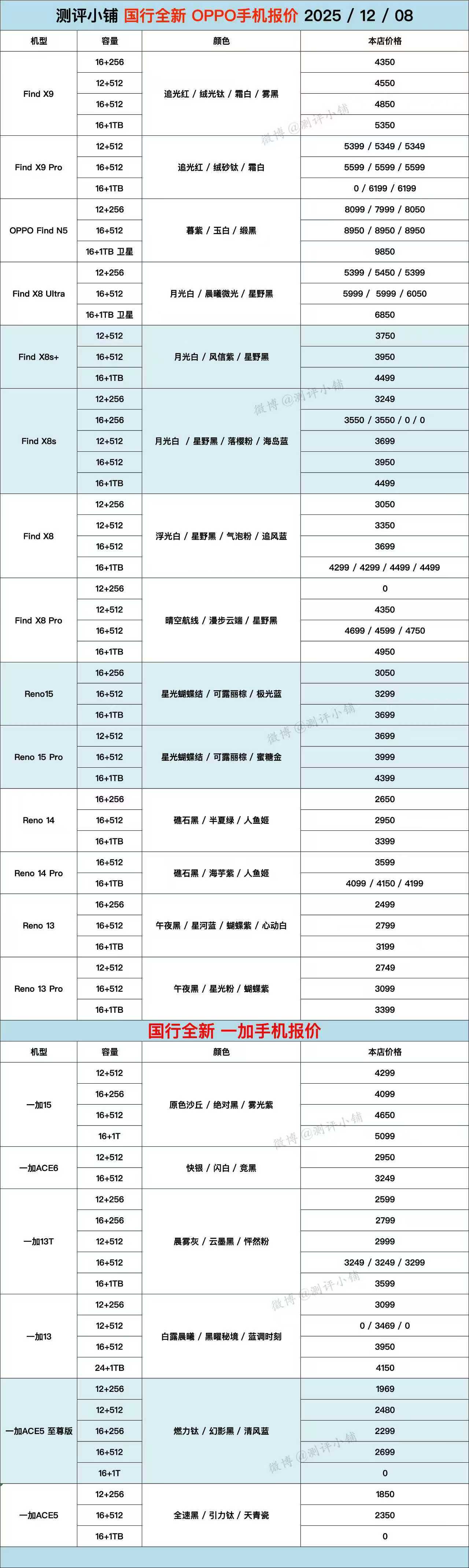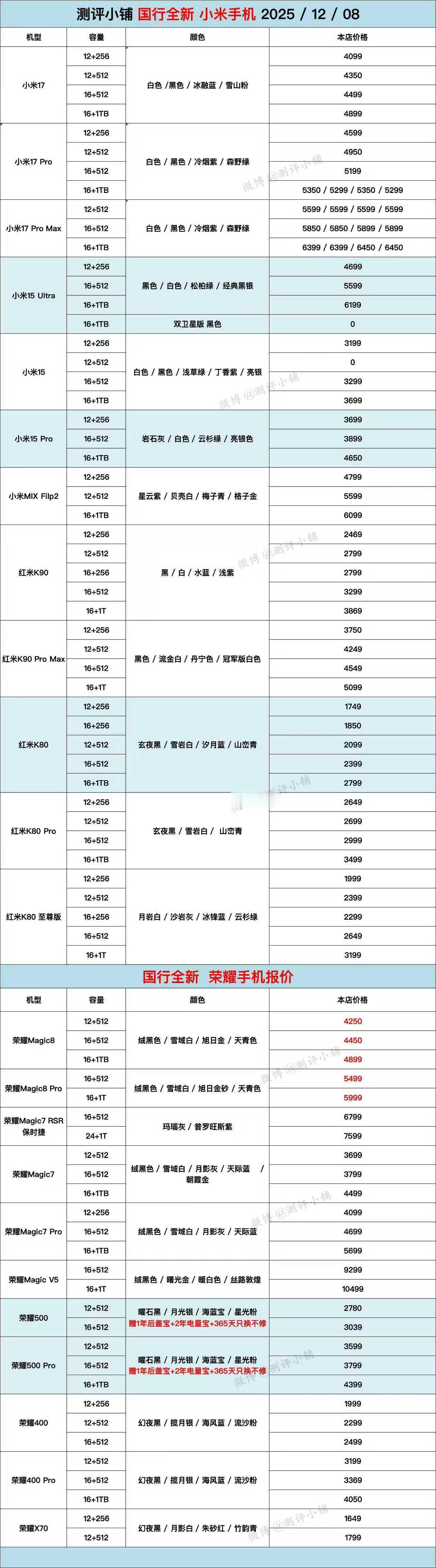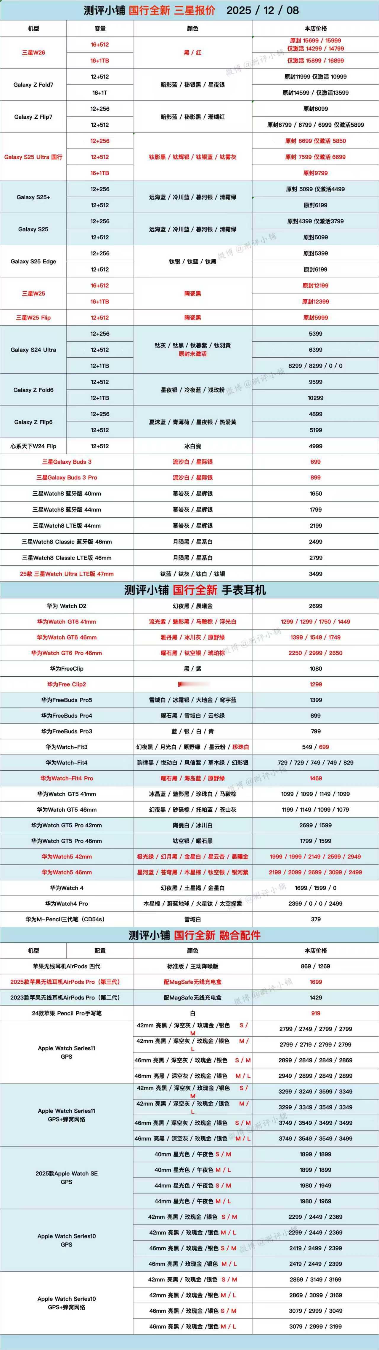 12-08国行全新机,iPhone17系列,小米17系列,华为Mate X7、Mate80系列,Mate70,vivo X200系列,一加等更新。