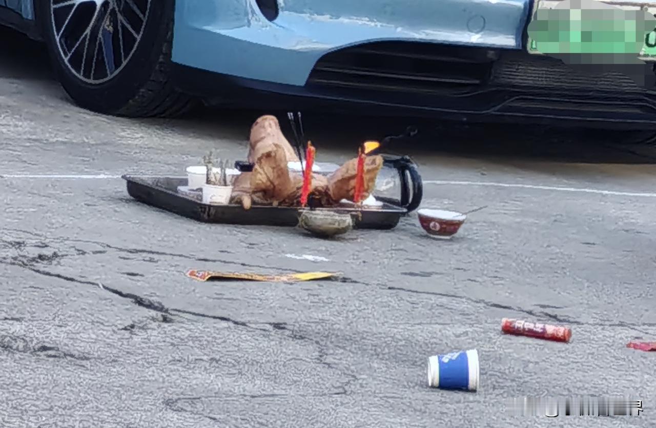 长这么大,还第一次看到,出殡后的下午,还要举行这样的仪式。 是一个猪头,还有香烛、鞭炮等,关键是前面排着一排汽车。当然这汽车,都是这两天为二伯母丧事办事用过的。 如今丧事办完,据说就要请路头,当然最终就是大吉大利保平安了。法师口中念念有词,最后车门打开,他又绕着每辆汽车说着好话,鞭炮齐鸣中焚化元宝…… 这一套仪式才宣告结束。居然还有办完丧事为汽车作法的,真是让人大开眼界呀。可是我们这里以前从来没有过啊!难道这是新时代的新花样?