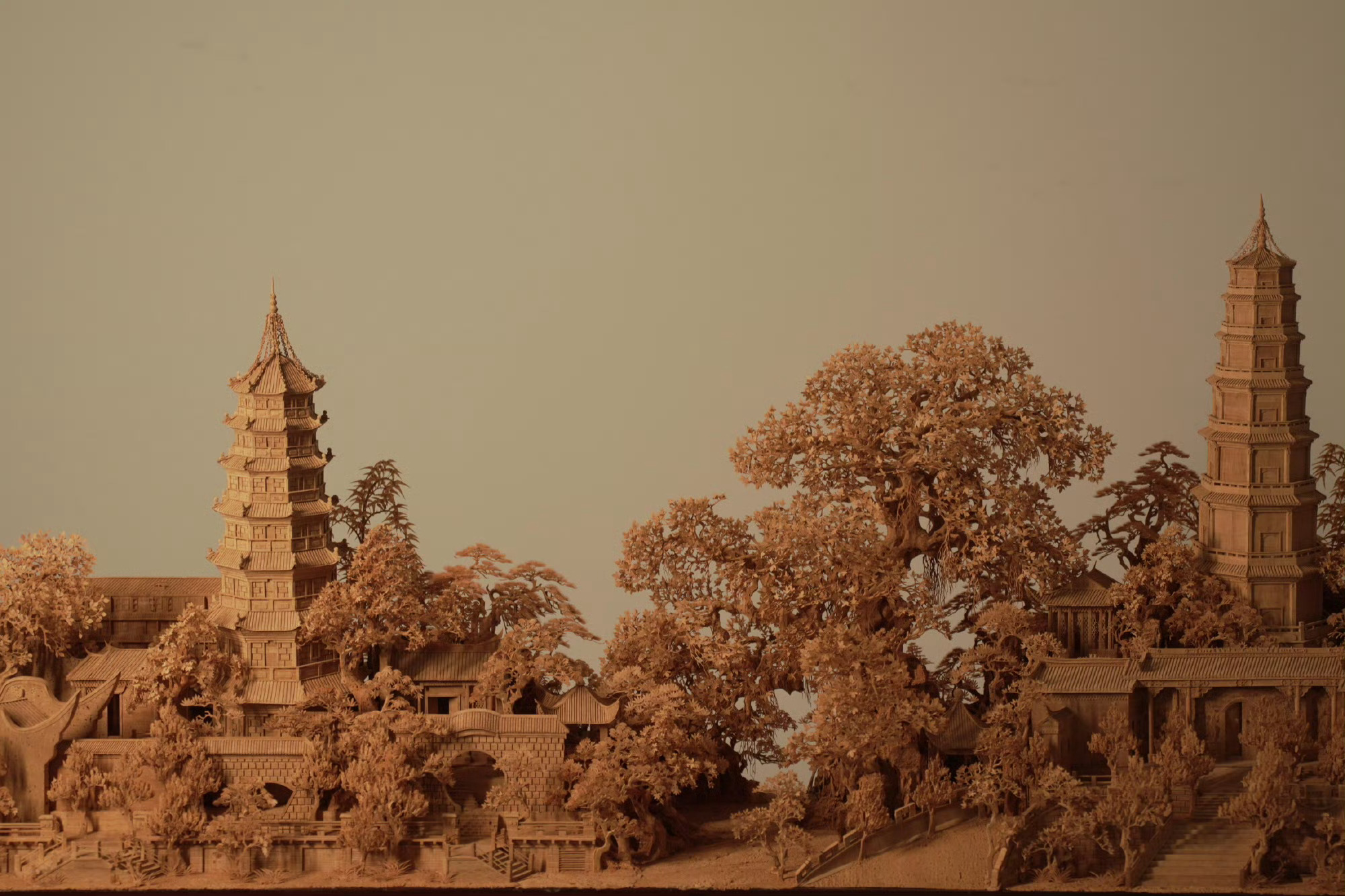 这个顶流发饰太上头了中国人把亭台楼阁戴在头上 软木画发饰美到心巴,方寸间藏山水雅