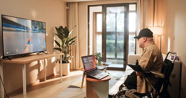 在位于上海的受试者住所,受试者通过脑机接口玩赛车游戏(2025年6月14日摄)新华社发(戴焱淼摄)