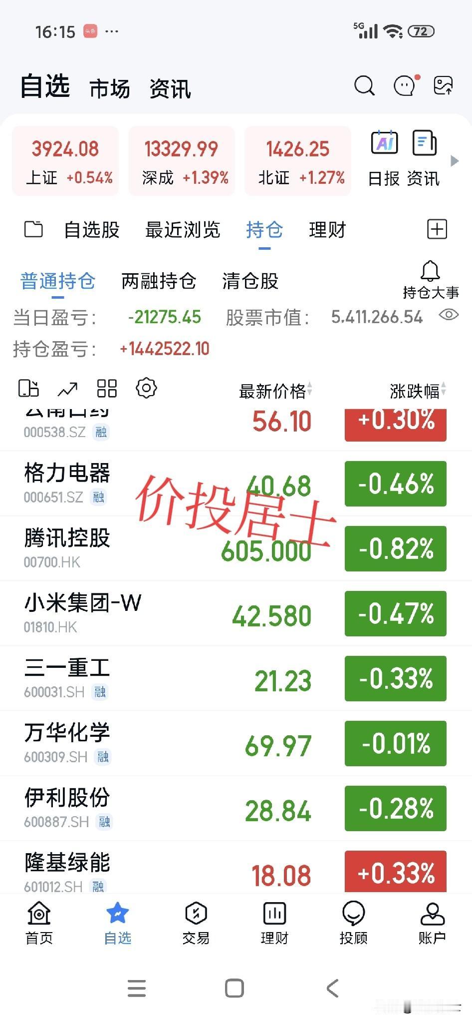 这会港股收盘了!科技股又卷土重来了[笑哭]目前也临近阳历年结束了,让我们耐心等待政策吧,去年我记得好像是12月15号左右,说的今年是适度宽松的货币政策。 然而看今年所谓适度宽松的货币政策,比09年的力度要小很多,究其原因还是老美那边在死扛着缓慢降低,造成我们这边也不可能降息与降准的力度太大,不然资金会被老美那边虹吸过去的,也会引来国际资本进行对冲套利! 持有老登股的朋友也别急,老登股不起来,这场牛市也不会完整的。以前的牛市里也有很多前期拉中小盘股,后期拉大盘股的历史。所以很多事情不到最后都不好说的。 个人来说,抱着一个大不了错过这轮牛市的心态,就像路是自己选择的,自己对自己负起责任就可以了[笑哭]