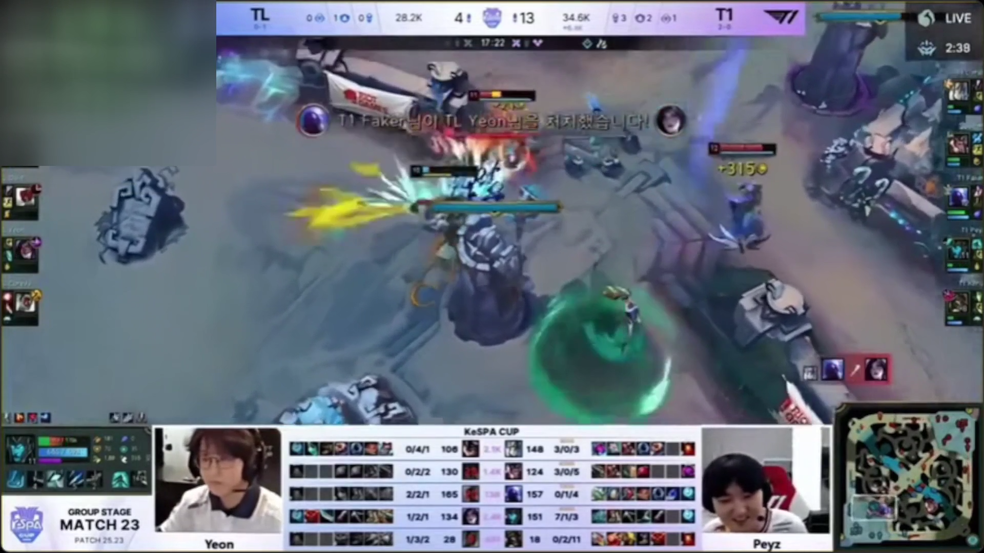 T1选用:Doran加里奥、Oner赵信、Faker瑞兹、Peyz卡莉斯塔、Keria烈娜塔