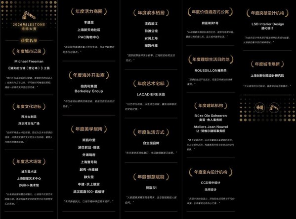 下午,2026MILESTONE地标大赏盛大启幕。现场揭晓了十六个重磅奖项,见证了当代地标如何融合商业生活、艺术宅邸与人文肌理,用突破性的设计语言重新定义美学资产。活动还设置了多场圆桌论坛与专题分享,邀请到澳门大学历史系讲席教授王笛、复星基金会及复星艺术中心主席王津元、垄上艺术机构创始人江宁、艺术家吴观真、苏州H+美术馆执行馆长吕金洲、新加坡吉宝城市发展部中国执行副总裁张逸、瑞安新天地社区创新总经理袁瑗、铁狮门设计与工程董事总经理阴杰、「上下」首席执行官刘微粒、BerkeleyGroup伯克利集团中国区负责人陶晓峰、上海CCD高级副总裁&全球合伙人陈彦豪、创邑广告创始人Amanda、让•努维尔事务所合伙人陈晨、HBA资深设计总监刘运发、奥雷舍人事务所合伙人张启民、SHL设计总监ChrisHardie,就相关议题展开对话,为观众带来跨领域的思想启迪。