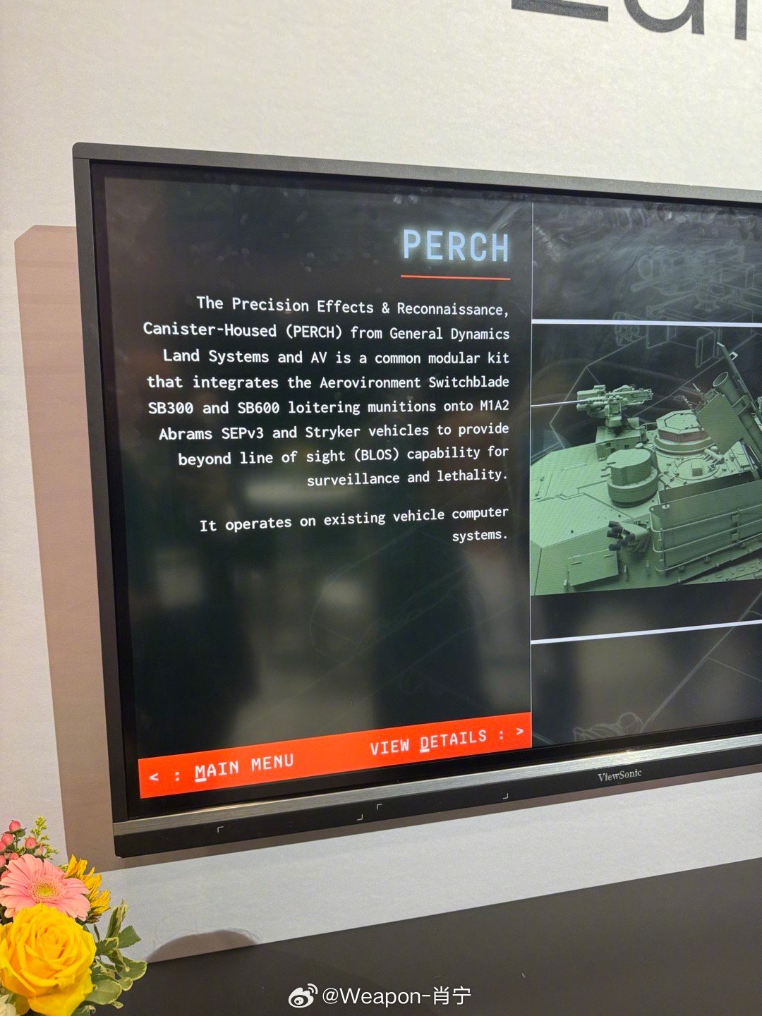 烽火问鼎计划每天认识一件兵器 美国陆军已成功在 M1A2 艾布拉姆斯坦克上测试了 PERCH 模块化发射器,使其能够部署弹簧刀巡飞无人机进行超视距侦察和精确打击。该系统无需任何结构改造,即可让士兵在防护位置操控无人机,从而扩大平台战场打击范围,并精确打击高价值目标。这是现代装甲战争的一项重大进步。通用动力陆地系统公司(GDLS)已在得克萨斯州完成"精准效应与侦察-筒装式"发射器(PERCH)在M1A2"艾布拉姆斯"SEPv3主战坦克上的集成演示,通过整合航空环境公司(AeroVironment)的"弹簧刀"系列巡飞弹药,使美军装甲部队具备了超视距侦察与精确打击的自主能力。此次升级满足了现代以无人机为主导的冲突中日益增长的远程交战需求。据该公司称,这一模块化系统旨在将重型装甲平台转化为可自主实施超视距侦察与精确打击的节点,且无需对车辆结构进行任何改动。在当前西方陆军正加紧汲取近期高强度冲突经验、适应巡飞弹药与武装无人机重塑战场形态的背景下,这一进展尤为重要。此次发布的核心是PERCH,这是由通用动力陆地系统公司和航空环境公司联合开发的模块化发射器套件,可将"弹簧刀"300和"弹簧刀"600直接集成到前线作战车辆上。PERCH替代了"艾布拉姆斯"坦克装填手的侧向储物箱,通过螺栓固定在现有接口点上,无需对炮塔结构进行任何焊接或切割,同时保持了车辆的可达性与维护性。通用动力陆地系统公司表示,未来版本计划与车载计算机系统直接连接,使PERCH能完全集成至如"艾布拉姆斯"SEPv3和"斯特瑞克"步兵输送车等平台的数字化架构中。该方法旨在利用成熟的巡飞弹药技术以及标准的车辆电源和数据接口,而非要求制造全新炮塔或定制发射器,从而提供一条低风险、快速的集成路径。对于装甲部队而言,其结果是一辆能够观察并打击远超直接视距目标的坦克,同时车组成员得到装甲保护,主炮及现有武器系统仍可完全用于常规交战。近期在美国陆军MARS活动中进行的演示为此概念提供了逼真的作战环境验证。MARS于10月26日至30日在得克萨斯州胡德堡举行,是一个专注于工程与机动保障任务(如敌对环境下的破障、道路清理和机动能力)的实验平台。试验期间,士兵使用装备PERCH的"艾布拉姆斯"坦克执行了复杂障碍破袭任务,结合运用"弹簧刀"300和"弹簧刀"600进行超视距侦察以及对模拟高价值目标的超地平线瞄准。巡飞弹药在障碍区及更远空域提供了空中监视,将目标数据回传至车组,实现了坦克无需暴露于直射火力或人员无需下车徒步侦察即可进行精确交战的能力。此配置有效地将"艾布拉姆斯"从纯直瞄火力平台转变为具备在编队前方塑造战场空间能力的综合传感器-射手系统。从作战角度看,PERCH回应了装甲部队日益增长的、在远距离上自主生成精确打击效果的需求,而非完全依赖更高层级的炮兵或空中支援。通用动力陆地系统公司强调,PERCH使部队能够"在保持隐蔽和掩护的状态下,在战场前沿部署弹簧刀",这体现了将坦克作为消耗性无人机受保护发射平台的理念。航空环境公司则指出,将"弹簧刀"300和600集成到通用动力陆地系统公司的平台上,可在射程与响应速度方面带来立竿见影的效益,提供从受保护阵地发起的快速、精确打击。实践中,装备PERCH的"艾布拉姆斯"或"斯特瑞克"可在主力部队投入前使用游荡弹药侦察城区、林线或遮蔽阵地,执行战损评估,或压制敌方原本无法直瞄观测的反坦克小组与炮兵观察员。其战略影响超越了新发射器的技术集成本身。过去十年,特别是自乌克兰和南高加索地区的冲突以来,巡飞弹药已成为反炮兵作战、指挥所精确打击以及削弱装甲编队的核心手段。通过在"艾布拉姆斯"坦克和"斯特瑞克"车辆上部署"弹簧刀"弹药,美国陆军正在探索一种新模式:重型装甲不再仅是敌方无人机的目标,而是主动参与无人机作战的平台。从军事学说上讲,PERCH有助于推动向分布式、网络化火力转型,使每个平台——坦克、步兵输送车或无人系统——都能成为传感器和射手节点,融入更广阔的杀伤链。PERCH早前于2025年在华盛顿AUSA展览上的亮相已指明了这一方向,当时通用动力陆地系统公司描述这是一种非侵入式集成套件,旨在连接现有硬点与车辆系统,以实现超视距侦察与精确打击,而无需修改坦克结构。MARS演示则表明,该概念已从展会原型机发展为在士兵参与下、置于真实破障与机动场景中的实地实验。在MARS活动中成功的PERCH演示,标志着将坦克和装甲车辆转变为无人机战场中一体化效应器(而非仅是防范无人机攻击的平台)迈出了重要一步。通过结合"艾布拉姆斯"的火力与防护以及"弹簧刀"巡飞弹药的射程与精度,通用动力陆地系统公司和航空环境公司为西方地面部队如何弥合重型装甲与快速演进的无人系统领域之间的差距提供了一个模板。如果未来试验能证实该系统的可靠性,且美国陆军决定大规模列装,PERCH可能有助于重新定义装甲旅在高威胁环境下执行侦察、破障和纵深交战任务的方式,并可能对全球范围的装备采购决策产生深远影响。