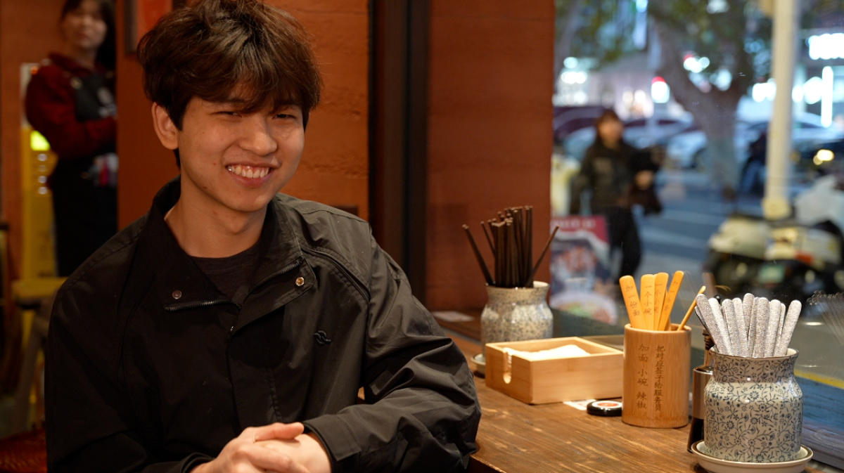 视频里,面馆的后厨忠航和服务员梦迪的爱情故事引起了网友的共鸣。“女朋友那一段也太可爱了吧,两个人都很可爱”“两个人互相扶持真的很好”“这个男孩儿带女孩出来工作,让他主动接触社会,真的很有担当……”谈起女朋友梦迪,忠航总是一脸幸福的微笑,19岁的他两岁时失聪,还略显稚嫩的他已经做过电子厂工人、洗头小哥、蛋糕烘焙师、洗碗工等多份工作,入职这家面馆后发现身边的伙伴全是聋人,于是便把较为封闭的女朋友梦迪带了过来,两人一起工作。
