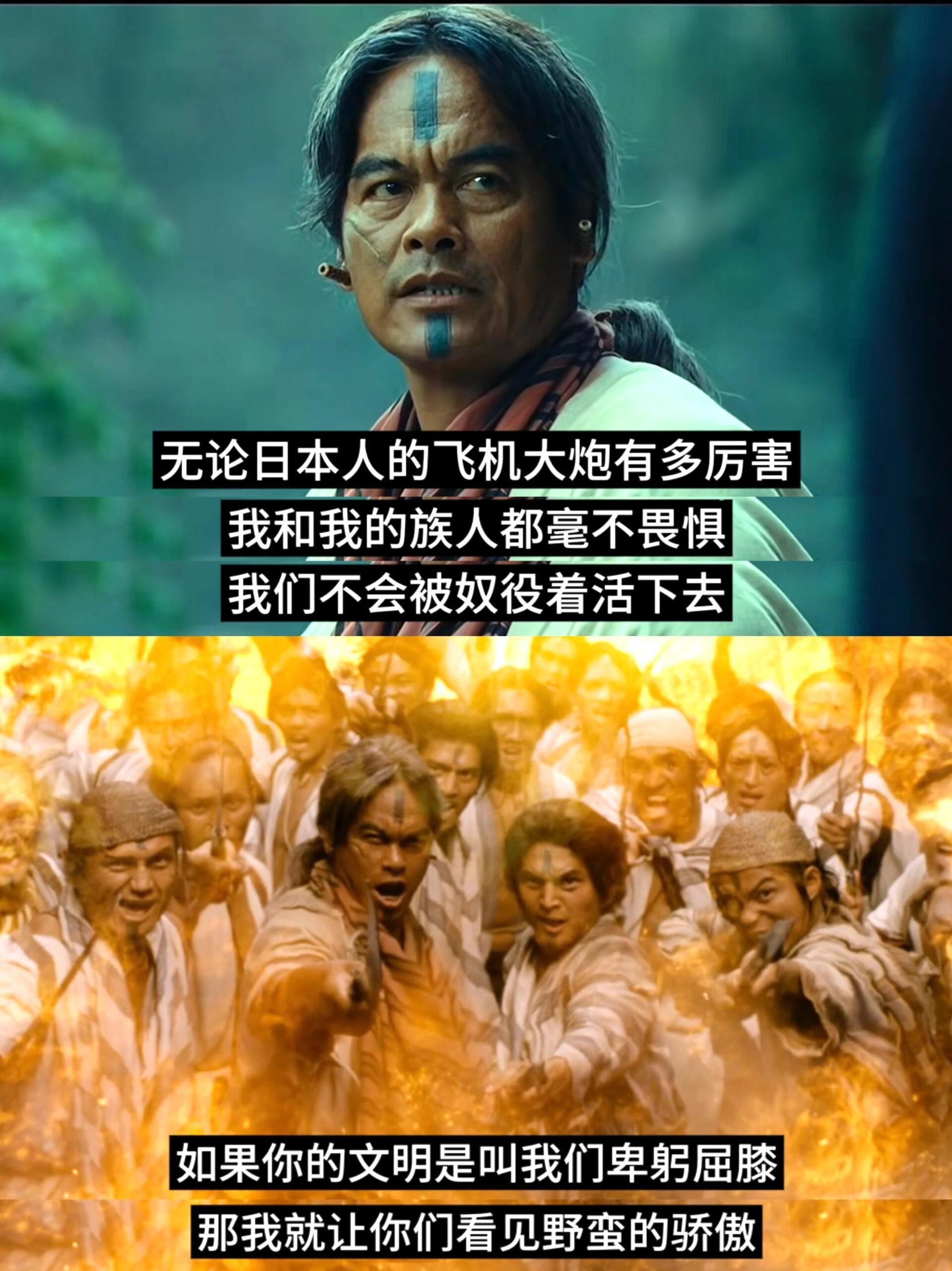 当日本用“文明”之名行殖民之实,莫那鲁道率领三百勇士挺身而出,用血肉之躯对抗三千日军!少年们纹上图腾奔赴战场,他们发出最壮烈的呐喊:“如果你的文明是叫我们卑躬屈膝,那我就带你们看见野蛮的骄傲! 真正的赛德克人可以失去身体,但一定要赢得灵魂!”它全民族抗战的重要组成,两岸中国人都应该看看《赛德克·巴莱》两岸中国人都该看看的抗日电影台湾少数民族歌手说这个电影此生必看