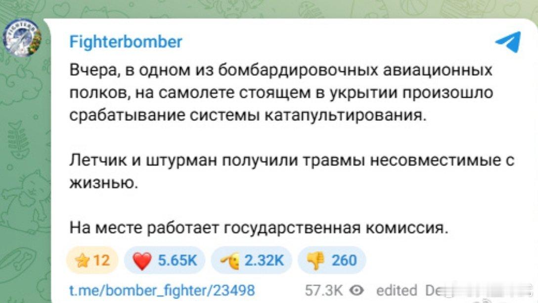 昨天,俄空天军一架Su34战斗轰炸机的弹射座舱在0速度、0高度条件下成功启动,但是撞在飞机掩体顶部,两名飞行员失去生命体征。这是正义的弹射座舱。普京宣布与乌克兰停火条件关注俄乌局势最新进展俄乌冲突