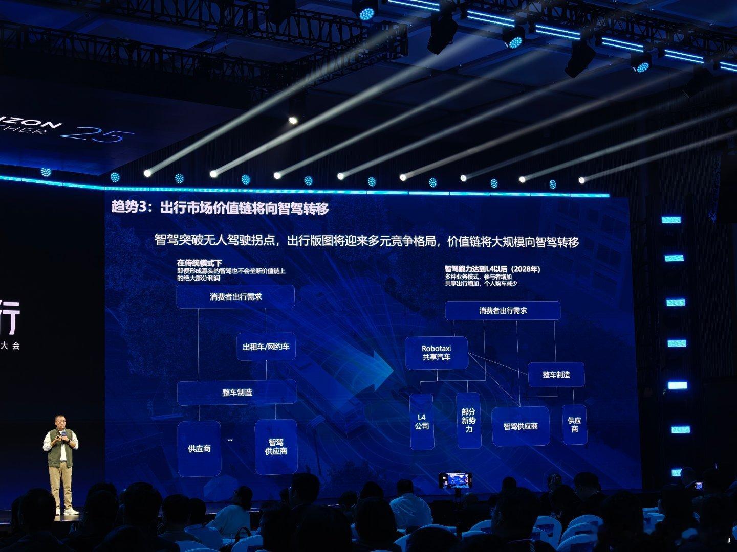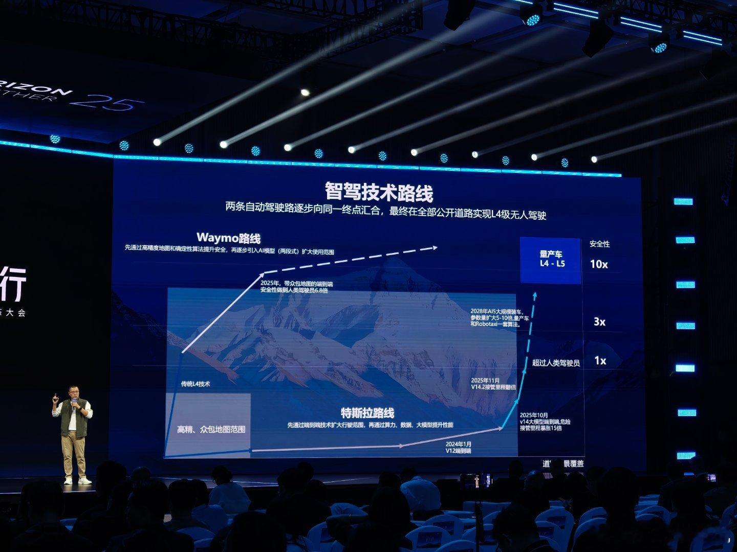 长城汽车智能驾驶总监姜海鹏的发言很有料,里面提到了几组数据1、智驾带来的安全提升还是很明显的,安全性提升差不多是5.9倍;2、智驾路线上 Waymo和特斯拉纯视觉是殊途同归;3、趋势上,他给了几个时间点,2026年高速L3试点、2026年高速L3、2027年城区L3量产、2028年城区L4。但是2028年要1000tops+E2E,这就要求做软件的都需要自己做芯片。4、出行市场的价值将向智驾转移,Waymo已经跑通了无人驾驶出租车,而特斯拉Cybercab在车辆规模达到100万辆的时候,每英里成本0.2美元,大概是Waymo的5%。汽场全开大v聊车2025地平线技术生态大会