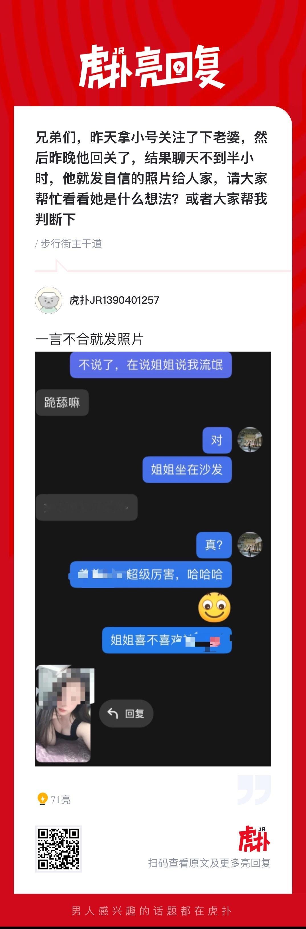 拿小号和老婆聊天,结果不到半小时,她就发照片过来了上虎扑搜步行街主干道