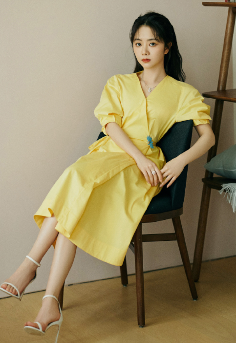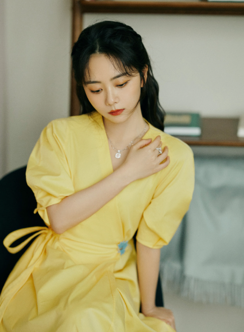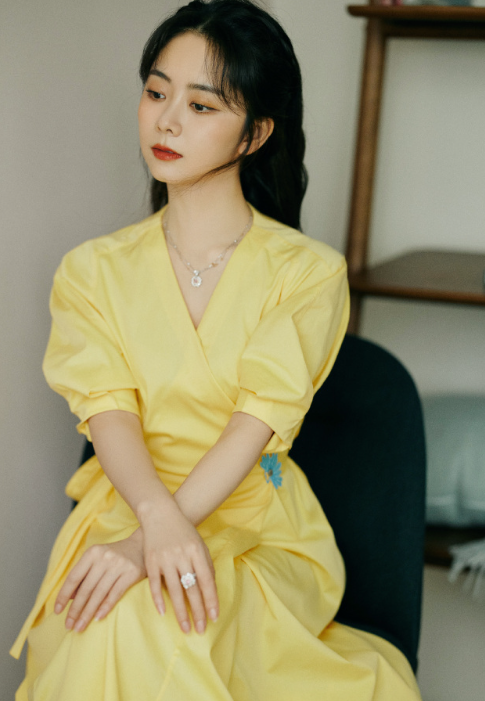 谭松韵的黄色小裙子,这妆造也是超可以的,很nice的,超爱的!