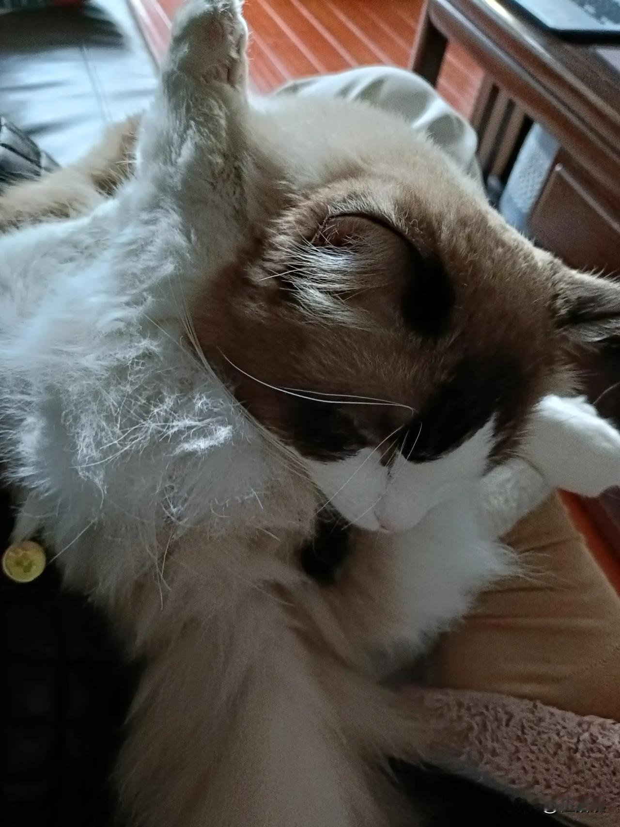 图一,有没有这种姿势的猫咪?[笑哭] 我先来,新鲜出炉的照片[呲牙] 我家布偶2