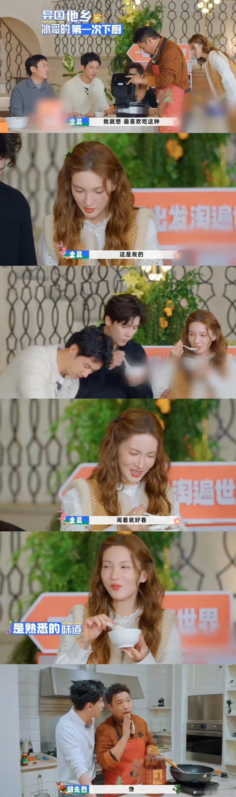 王安宇金晨一个鼓掌一个狼嚎谁被王安宇金晨的干饭reaction笑不活!贾冰的茄子焖饭简直是异国救赎,金晨双手合十“拜饭”急着炫,王安宇暴风吸入后疯狂拍手,一个馋到狼嚎一个虔诚到跺脚,吃货属性直接焊死,隔着屏幕都跟着流口水~