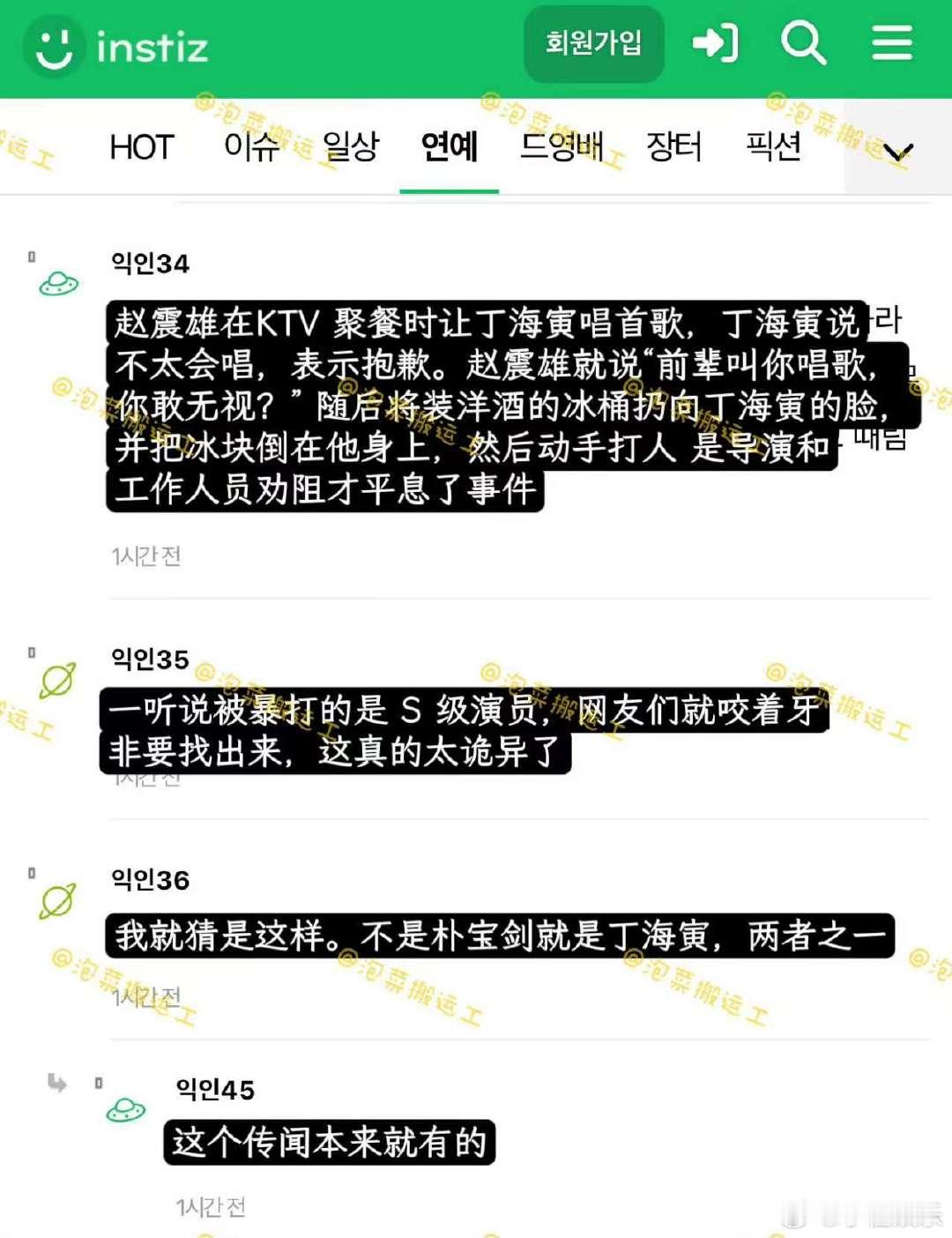曝赵震雄殴打的后辈演员是丁海寅omg……韩网现在爆料赵震雄殴打的后辈演员是丁海寅