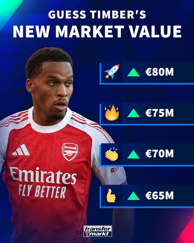 虎扑12月08日讯明日德转即将更新英超球员最新身价,德转官方为廷贝尔最新身价预热,最高上涨至8000万欧,最低6500万欧。