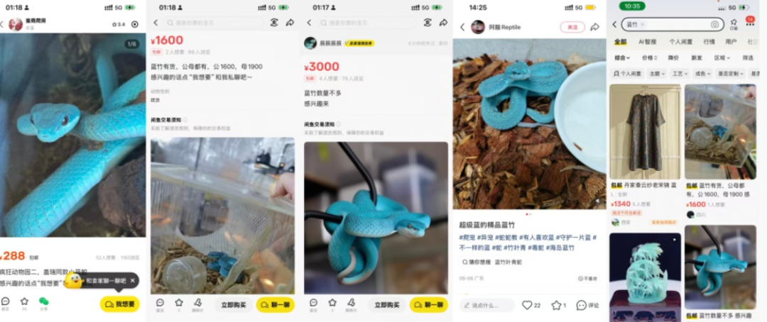 王先生说,竹叶青属于剧毒蛇类,他认为此类活体不应在网商平台售卖,遂向闲鱼进行举报,但被以证据不足为由驳回。