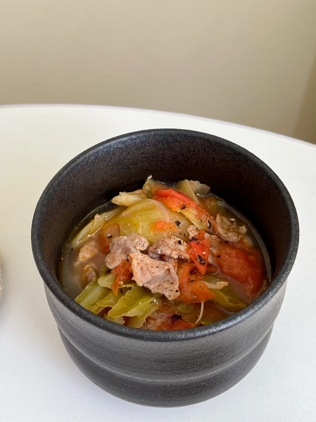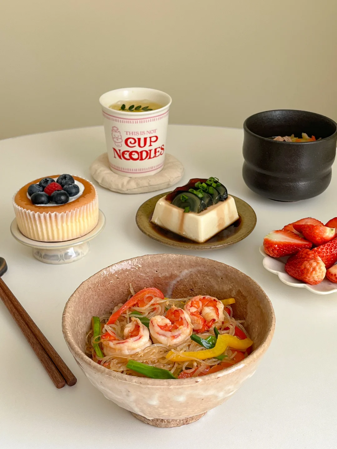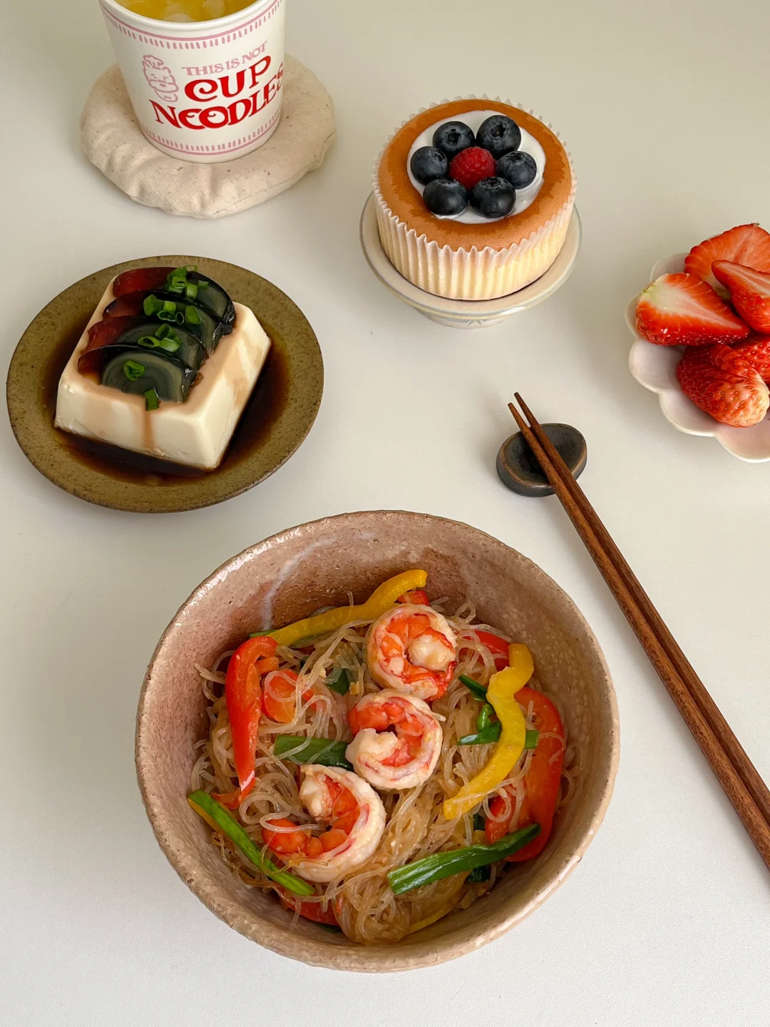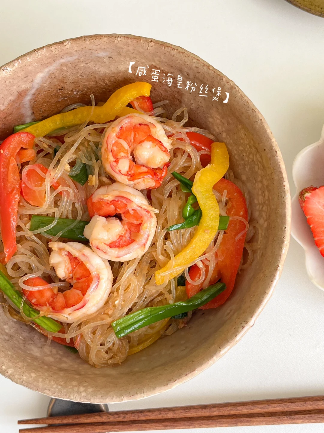 今天的饭: 咸蛋海皇粉丝煲🍤 皮蛋豆腐🍮 猪肉番茄蔬菜汤🍅 莓果咸蛋糕🍰 冰橙汁🧃