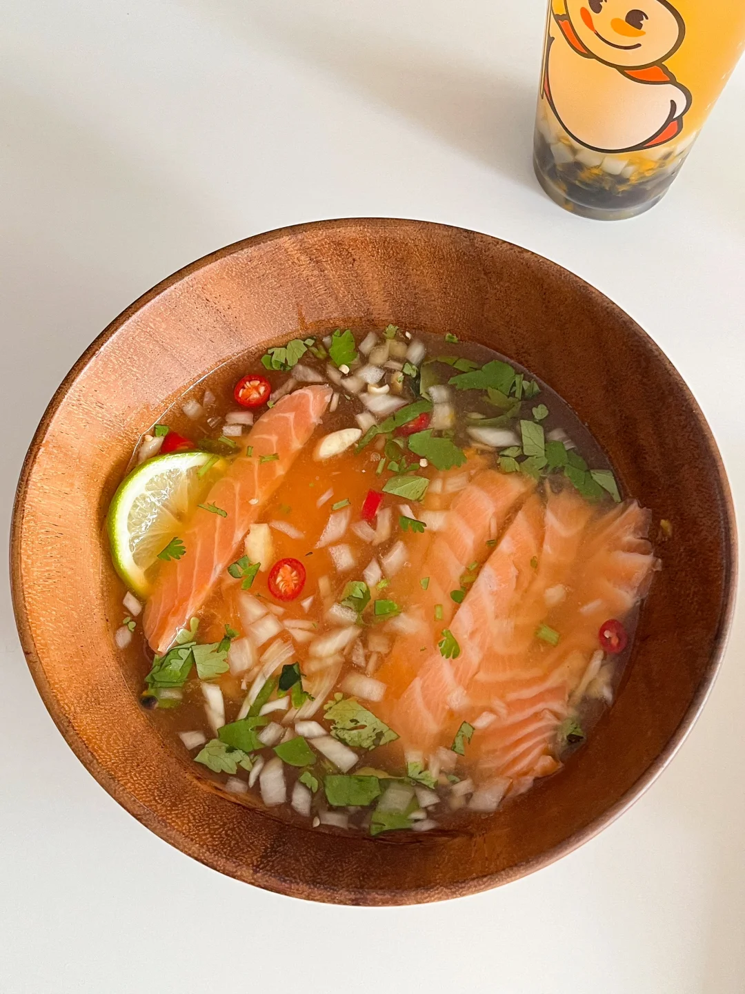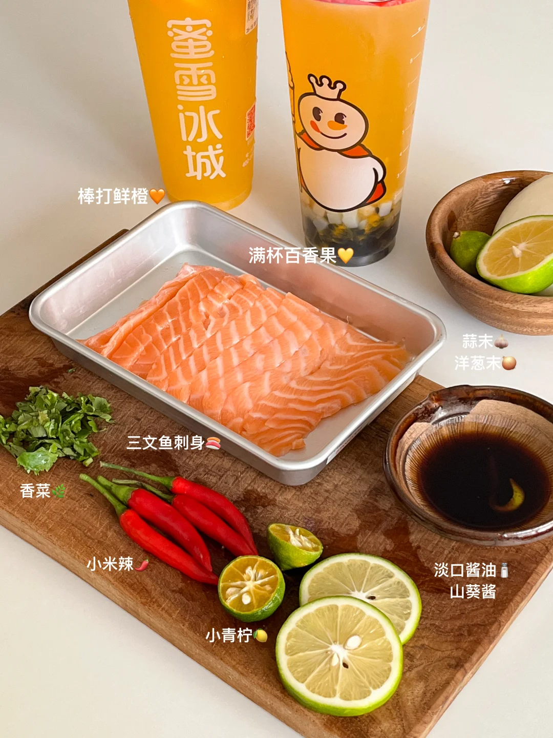 拌匀了再放三文鱼 冰箱冷藏30分钟
