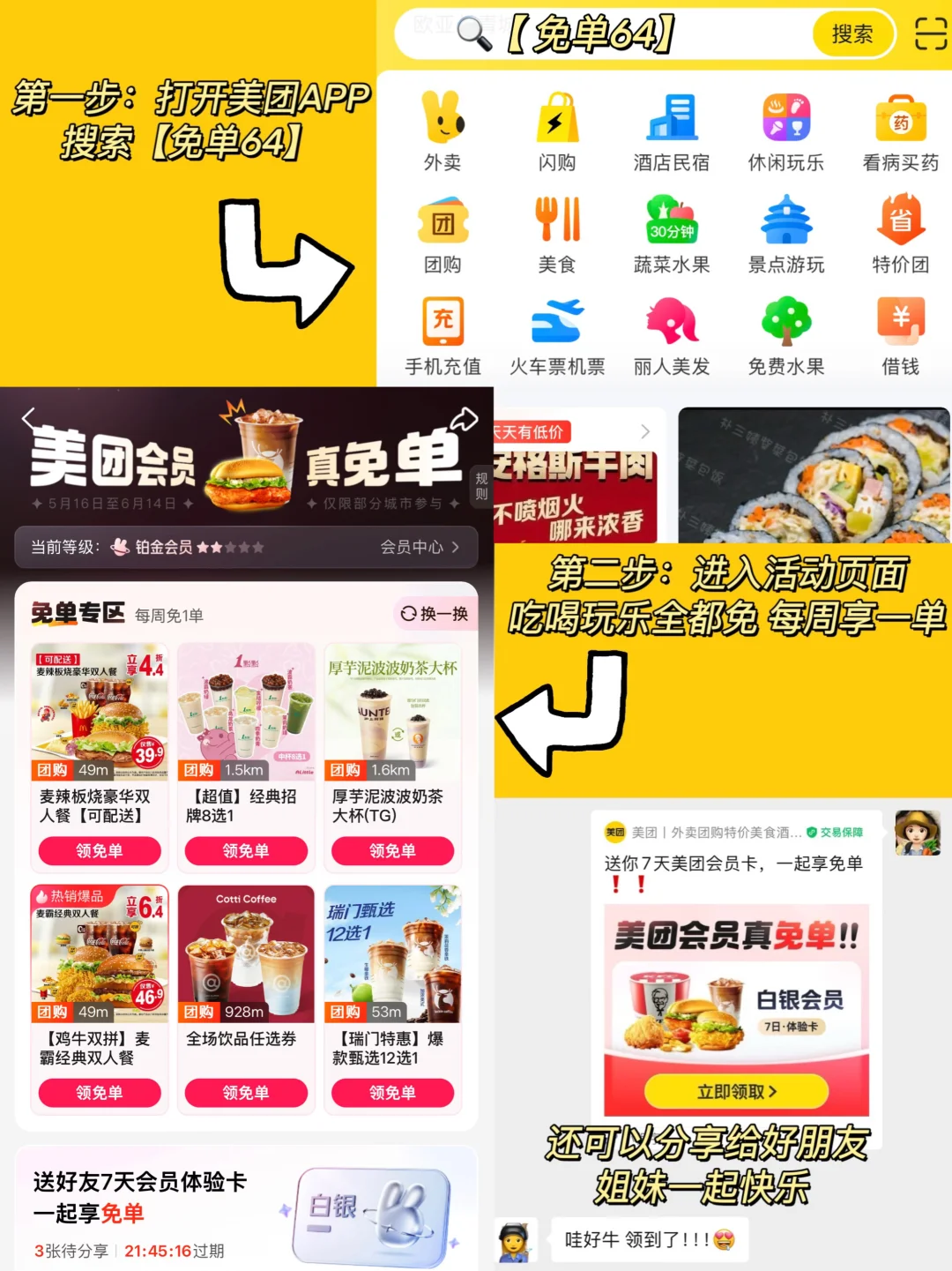 ▪️吃喝玩乐全都免,每周享1单,承包你的快乐
