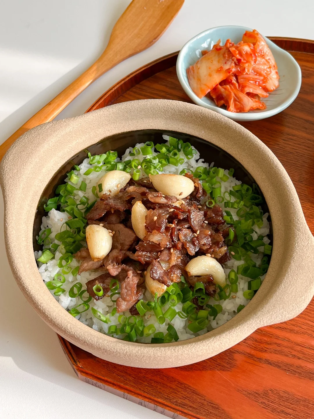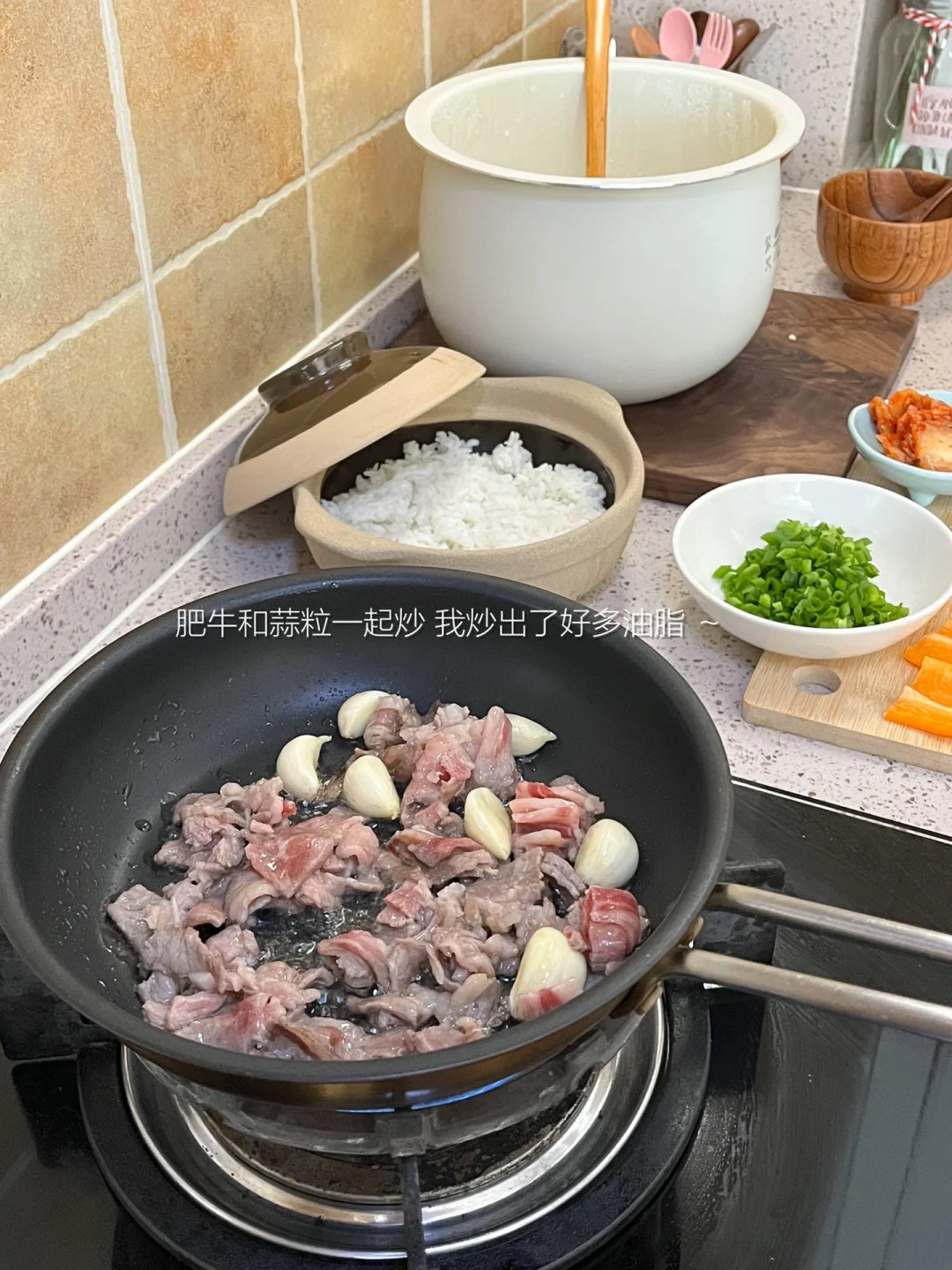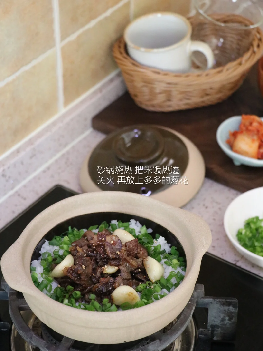“叮咚!今天做了牛肉砂锅饭,偷懒用剩米饭也烤出了脆脆的锅巴~尽量中午吃,因为太香全吃光了肚子好撑!”