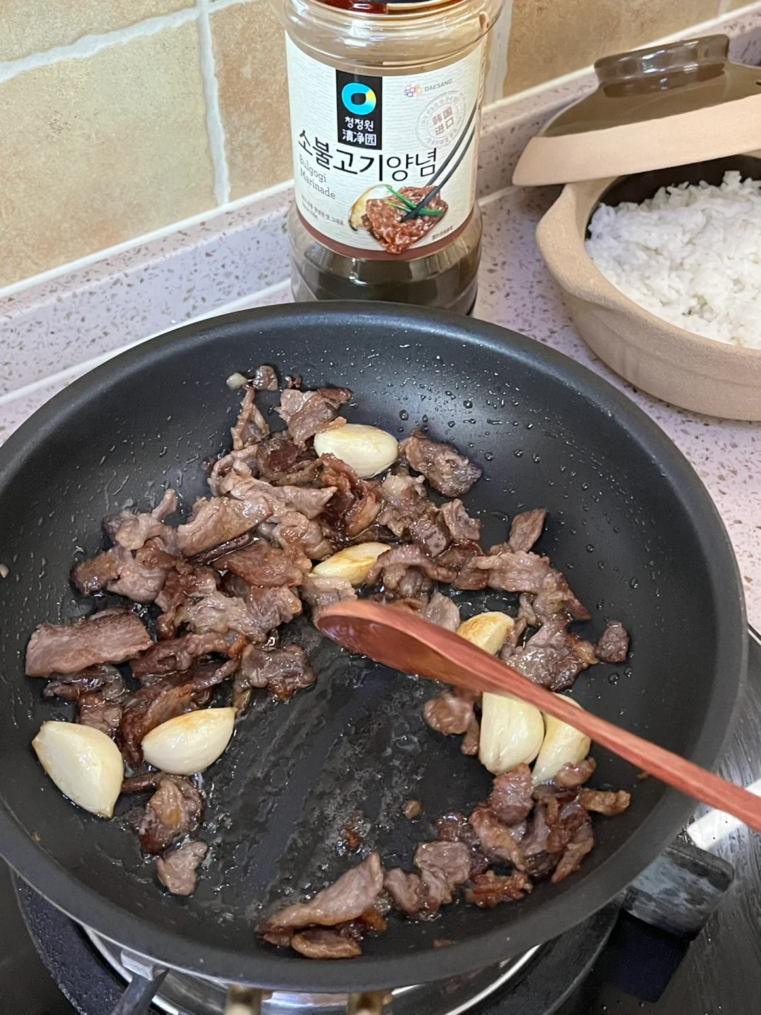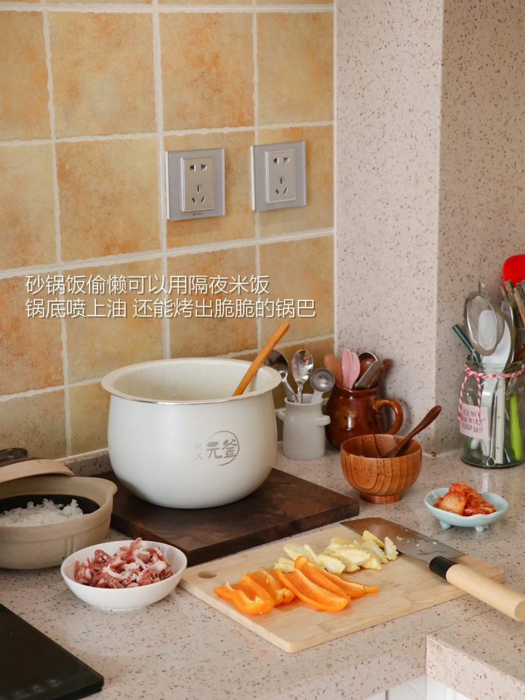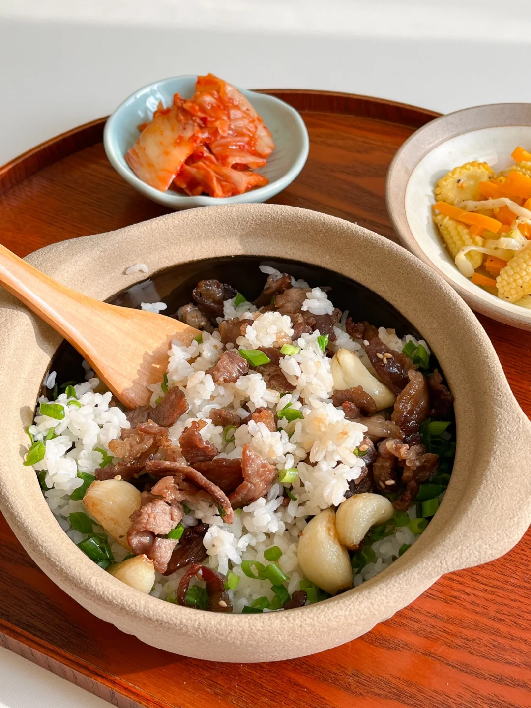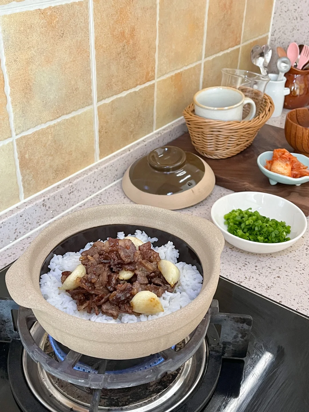 “叮咚!今天做了牛肉砂锅饭,偷懒用剩米饭也烤出了脆脆的锅巴~尽量中午吃,因为太香全吃光了肚子好撑!”