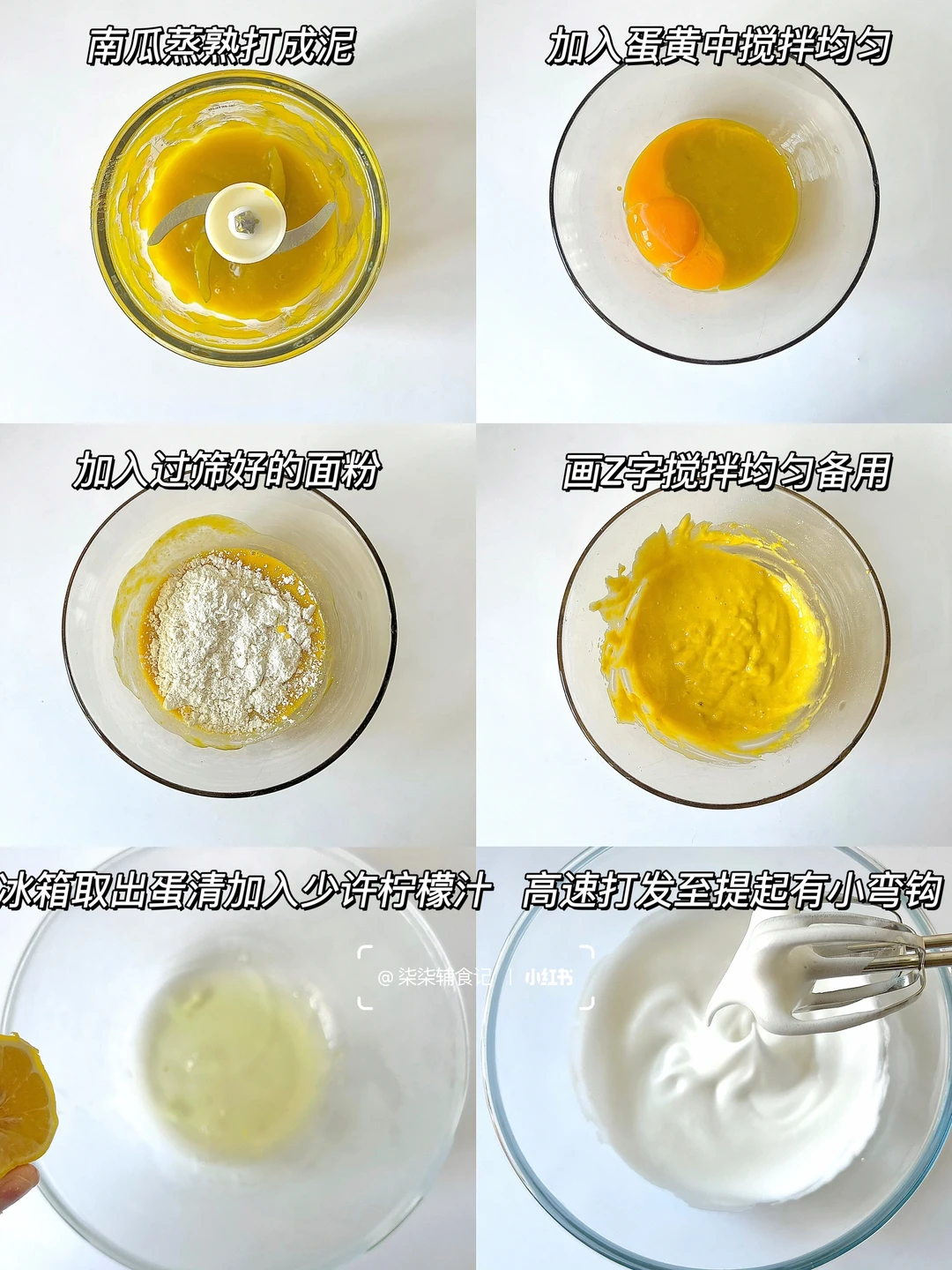 低筋面粉40g、南瓜泥50g、鸡蛋2个