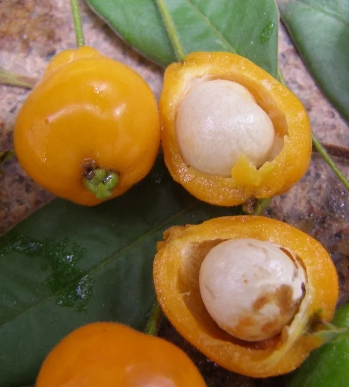巴西大西洋森林地区的一种稀有物种。它结着肉质的黄色果实,被描述为具有极好的味道,带有苹果和甜椒的色调,以及玫瑰苹果般的香味。新的叶子很有观赏性,呈深铜红色。10-21英尺/7米的中小型树木。自然生长在山区,因此可能有一定的轻度耐霜性。