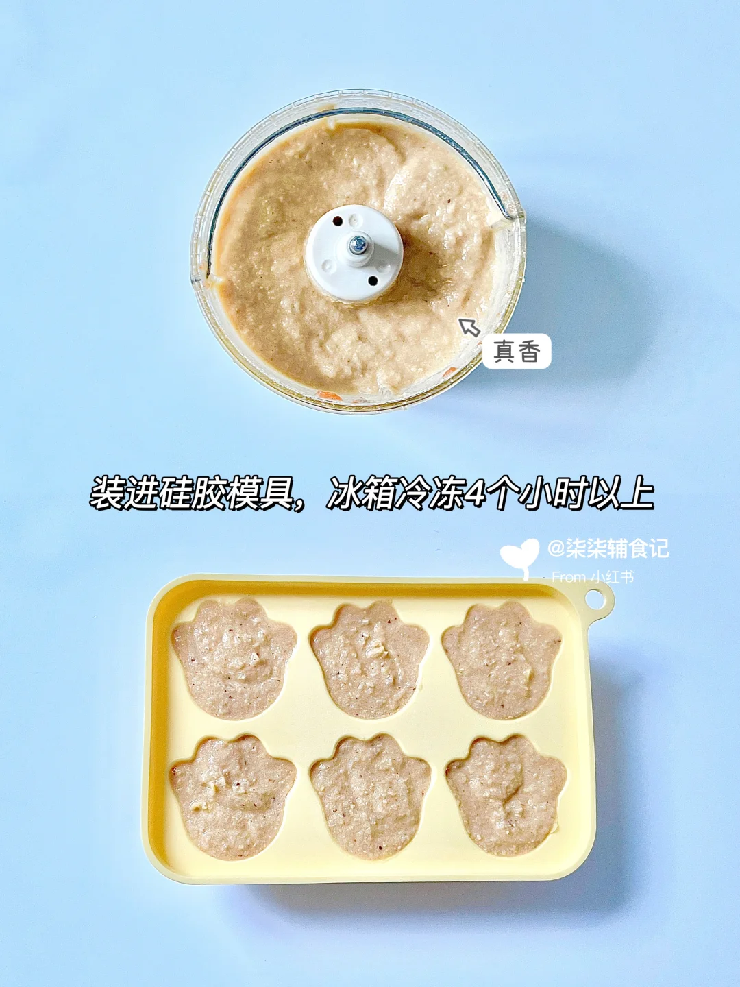 ▫️打好的泥放进硅胶模具,冰箱冷冻4个小时以上取出放密封袋里,继续冷冻保存。