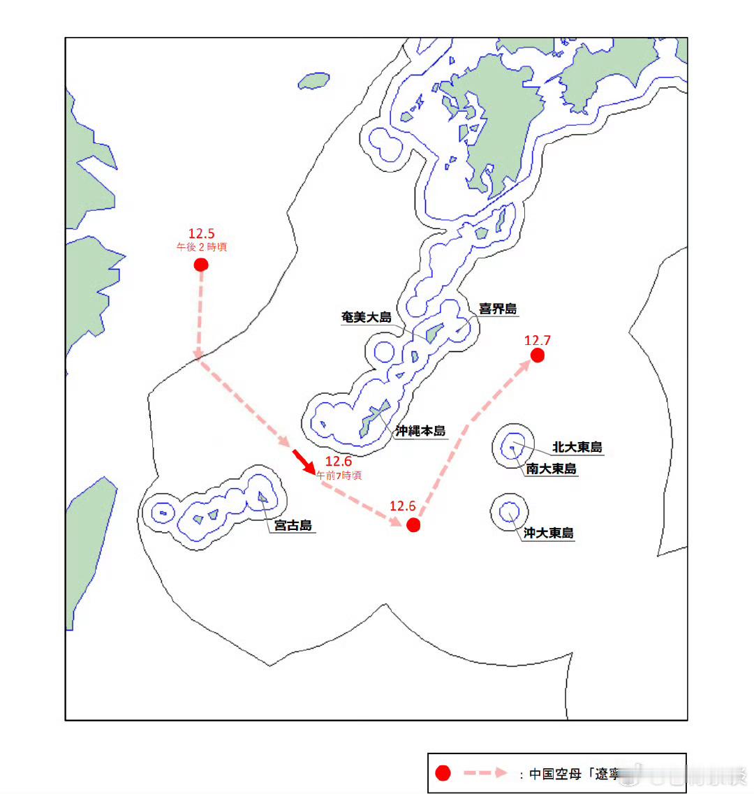【罕见,辽宁舰沿琉球群岛北上】辽宁舰罕见沿琉球群岛北上 根据日本防卫省发布消息,12月7号,中国海军辽宁舰航母战斗群沿琉球群岛以东海域北上,抵达喜界岛以东约190公里处。相较于前一天位置,辽宁舰北上约600公里。这是辽宁舰近年来首次通过宫古海峡以后北上航行。除了航母辽宁舰,055型导弹驱逐舰南昌舰(舷号101)、052D型驱逐舰西宁舰(舷号117)与开封舰(舷号124)伴随辽宁舰航行。同时,自卫队通报称,12月6号,日本自卫队观测到辽宁舰共进行约50架次的舰载战斗机和直升机起降,12月7号,舰载战斗机等进行了约50架次起降。辽宁舰首次通过宫古海峡后北上航行