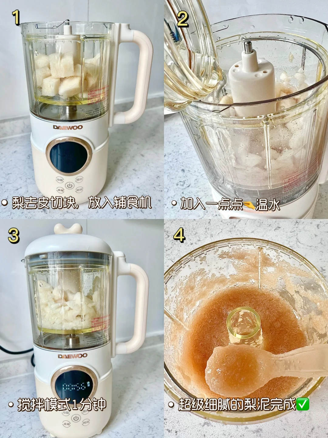 今天还用了新的辅食机做辅食,买的大宇家的新款,没想到打得肉泥和水果泥都挺细腻的耶~把食材准备好放进去,蒸熟后直接打泥,肉泥18分钟就完成,比之前自己先蒸再拿出来打泥方便很多,懒人福音哈哈~