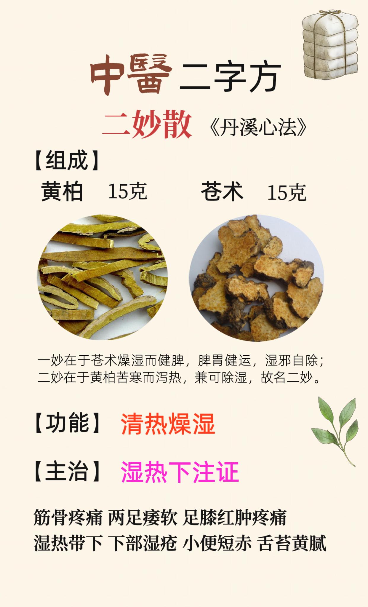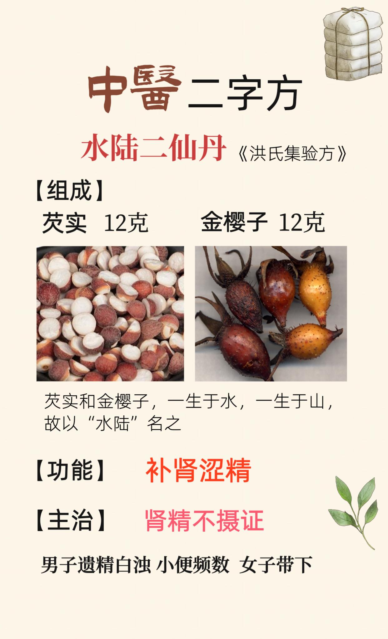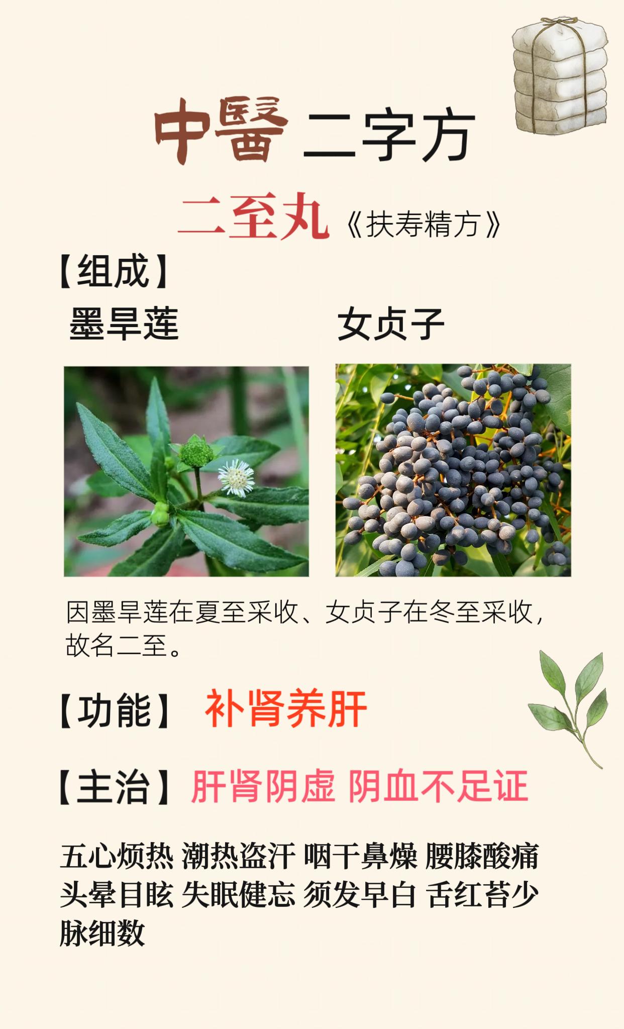 中医二字方。两味药组成的方剂:二神丸 二至丸 二妙散 水陆二仙丹