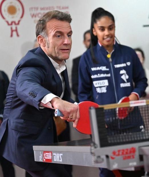 马克龙和中国国乒队员互动打球,说是展示自己倒也有点道理,但这“展示”背后意义可大了去了。12月5日在成都四川省体育馆,马克龙跑去看望法国队队员,还跟王楚钦、孙颖莎等国乒队员切磋球技。他穿着西装就上阵,先是打男双对练,又玩混双,面对“莎头组合”。一开始他老接不住球,笑得直不起腰,还喊孙颖莎“莎莎”,氛围轻松极了。后来他成功把球打回去,兴奋得竖起大拇指。这不仅在是展示自己,更像是用乒乓球搭建中法友好桥梁,让体育成了沟通纽带,挺有意义的。 从2025年12月5日马克龙在成都打乒乓的情况来看,他平时大概率是打乒乓球的。当天在四川体育馆,马克龙穿着西装就上场对战国乒冠军。在男双中,他握拍接球动作稳,反手动作标准;混双里,面对孙颖莎刁钻的侧旋球,他也努力去接,第四次成功接住还获全场鼓掌。王楚钦还特意放慢节奏喂球。他击球动作有模有样,要是平时不打,很难有这样的表现。这次乒乓交流也展现了体育跨越国界的魅力,马克龙以球为媒传递对中国文化的喜爱,拉近了两国距离。