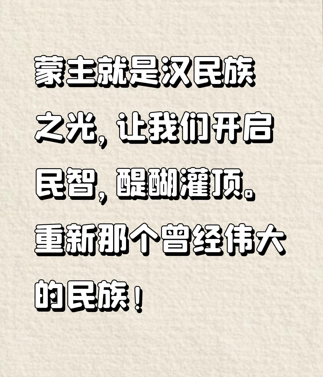 蒙主就是汉民族之光,让我们开启民智,醍醐灌顶。重新认识那个伟大的民族!