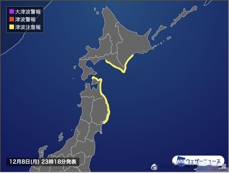 当地时间12月8日晚上11点15分左右(北京时间22时15分),日本本州东岸近海海域发生7.5级(日本气象厅最初测定为7.6级)地震,震源深度约50公里。日本7.6级地震日本海啸预警解除地震发生后,日本气象厅对北海道、青森、岩手、宫城、福岛等太平洋沿岸地区发布了海啸警报,最初预计最高海啸高度可达3米。沿岸地区实际观测到了海啸,其中岩手县久慈港观测到浪高70厘米的海啸,北海道浦河町和青森县八户港等地也观测到40至50厘米的海啸。日本气象厅在后续评估后,逐步下调了预警级别,并最终解除了所有海啸预警。人员伤亡与影响: 地震已造成多人受伤,青森县有数千户停电,约9万居民曾接到疏散指示。受影响区域的核电站未收到异常报告。