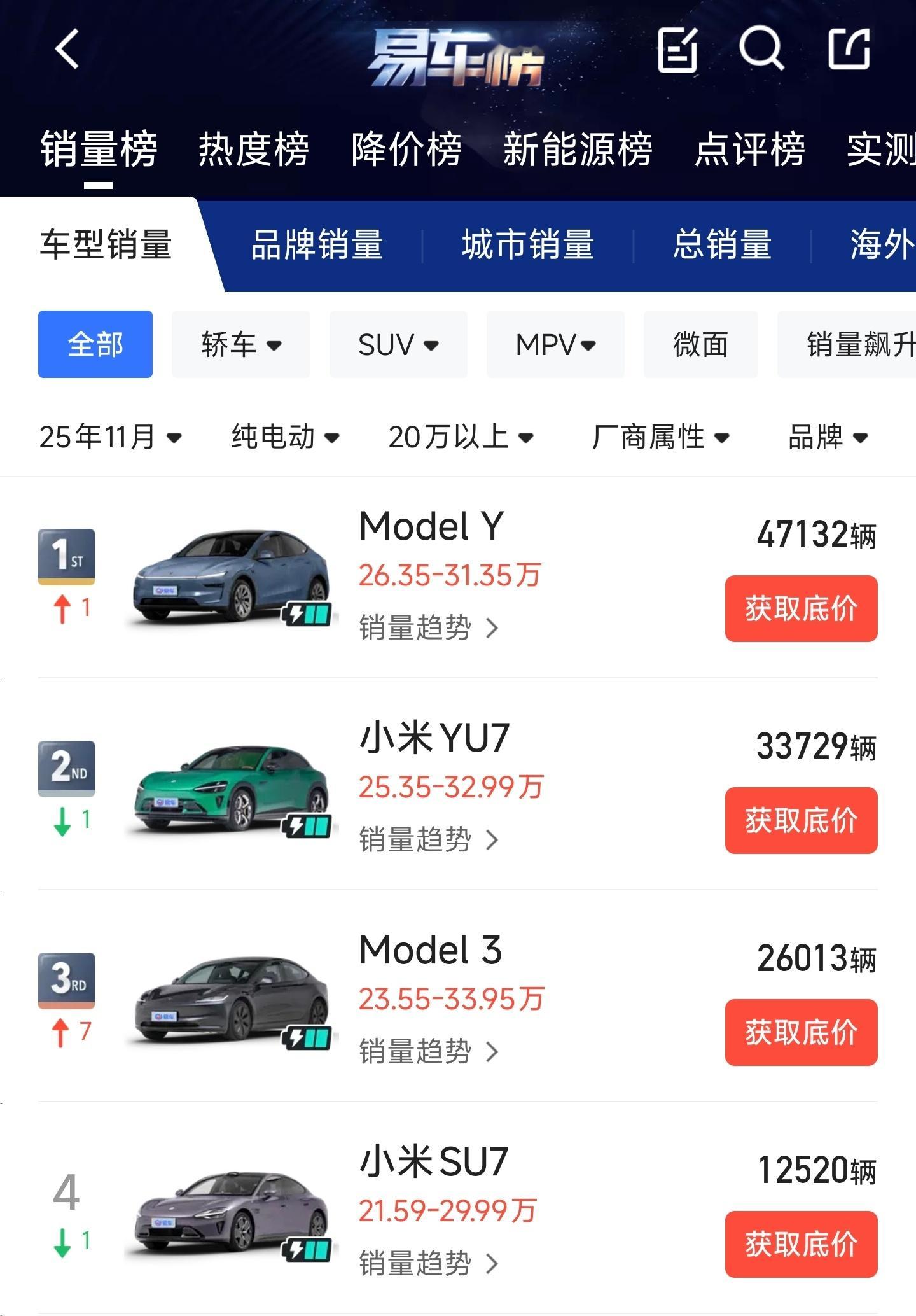 小米三款新车齐曝光 YU9、YU7 GT、SU7 L,追求舒适和追求运动的朋友都有得选了。看看新鲜出炉的11月销量榜,产能受限的YU7和改款将近的SU7能拿到这个好成绩,还有啥好说的