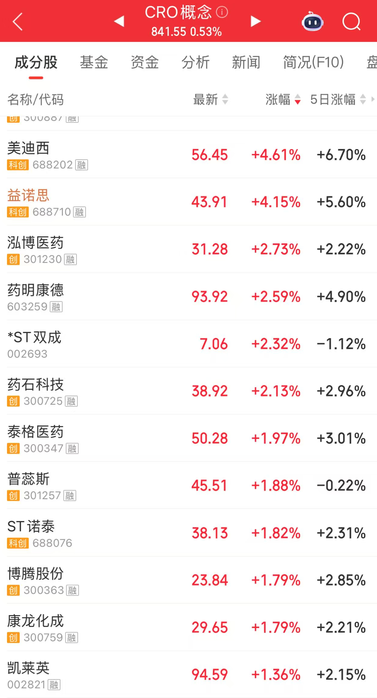 【实验猴价格暴涨!#CRO板块集体拉升#:#昭衍新药股价一度涨停#,药明康德、康龙化成跟涨】红星资本局12月9日消息,今日开盘,因“囤猴”闻名资本市场的昭衍新药(603127.SH;6127.HK)股价迅速走高。截至9点55分,昭衍新药A股股价一度涨停,报30.77元/股,最新市值230.61亿元,H股盘中涨超11%。截至发稿,股价涨超7%。网页链接