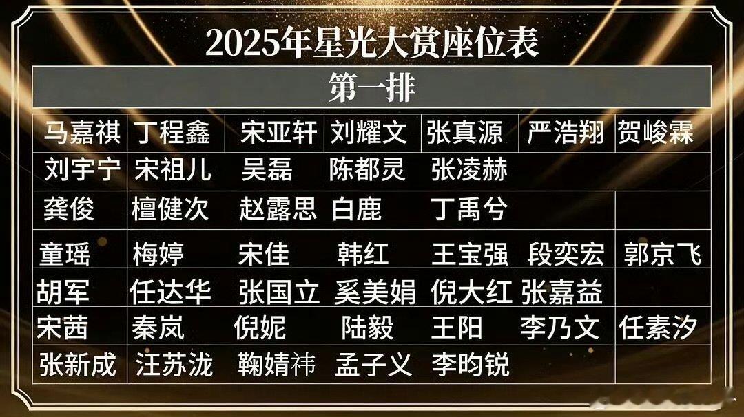 网友排的星光大赏座位表历年星光大赏 资深演员区齐聚老戏骨,中青演员区平衡作品与流量,各有侧重很合理~星光大赏星光值排名