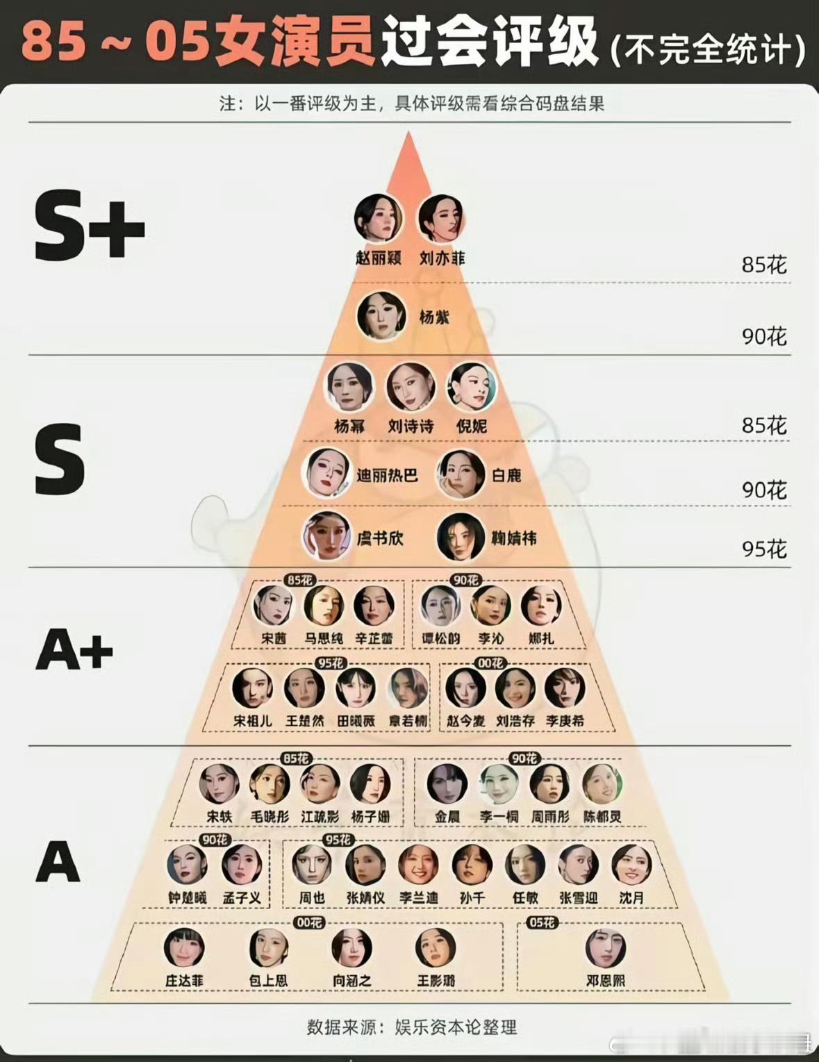 内娱女顶流梯队,你认同吗?85花:赵丽颖、刘亦菲、杨幂、刘诗诗、倪妮、唐嫣、张小斐、辛芷蕾90花:杨紫、迪丽热巴、周冬雨、李沁、金晨、白鹿、鞠婧祎95花:赵露思、虞书欣、周也、田曦薇、张婧仪、卢昱晓、孟子义、李兰迪内娱859095花的顶流梯队一目了然