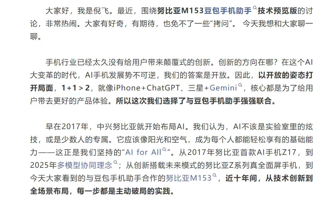 努比亚的新手机,给AI装上了“手和脚”。不再满足于和你聊天,而是想帮你直接订外卖、比价格,甚至管理行程。这种从“秘书”到“管家”的野心,预示着手机交互正迎来一次深层变革。这次变革的核心是“主动性”。过去的智能是被动响应,而未来的手机AI,或许会基于对你的了解,主动提议、跨应用代办。豆包手机的尝试,正是将这种构想推入现实实验室。遇到的兼容性问题,恰恰是旧规则对新模式的应激反应。问题本身揭示了方向:当AI试图串联起割裂的数字生活时,真正的“智能”才刚开始。这场实验的价值,不在于当下是否完美,而在于它提前触碰了未来我们必须回答的问题:你愿意让手机“管”你多少?努比亚总裁倪飞回应豆包手机