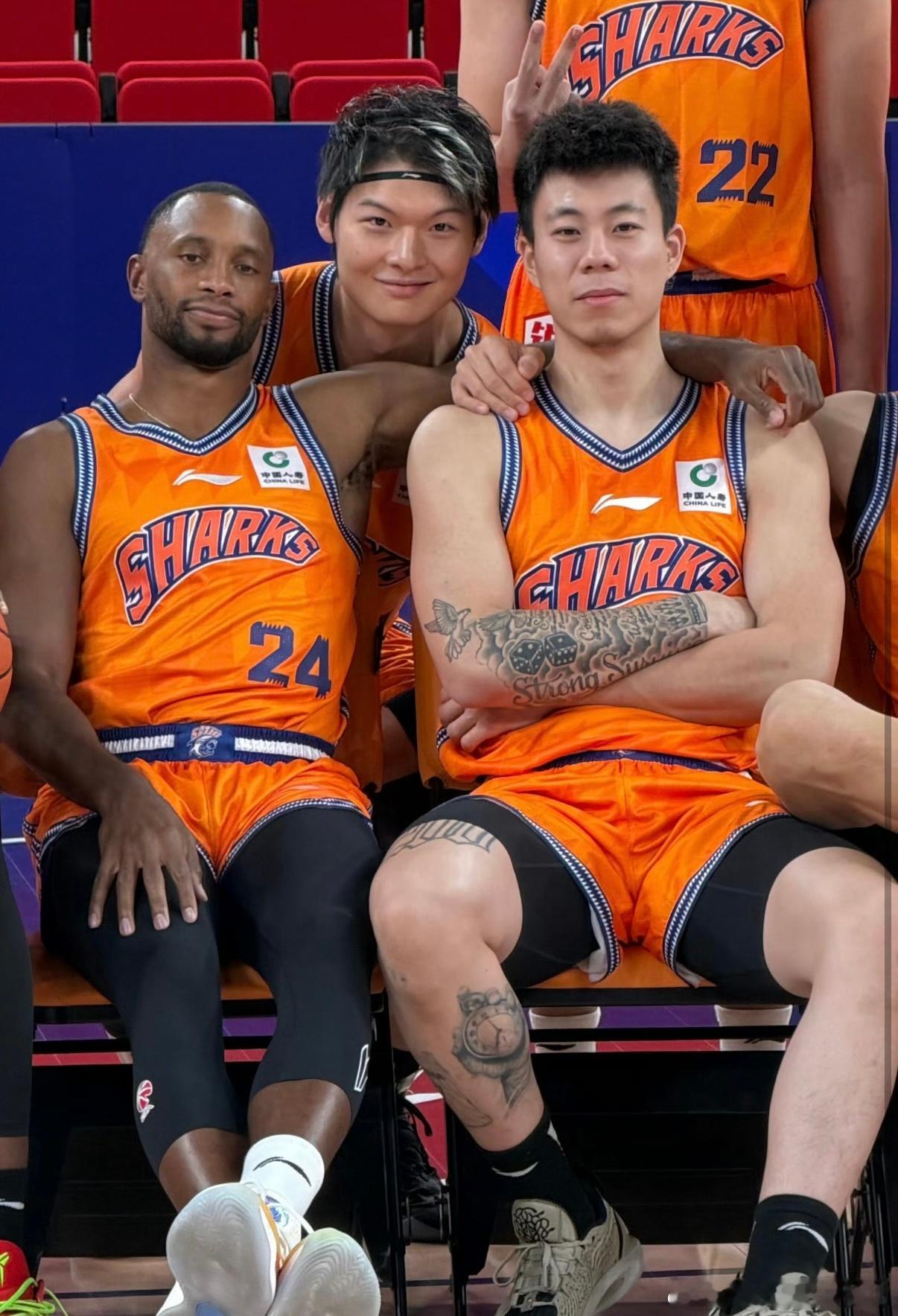 今天上海队新赛季拍摄日,哥俩地位不错辽宁男篮