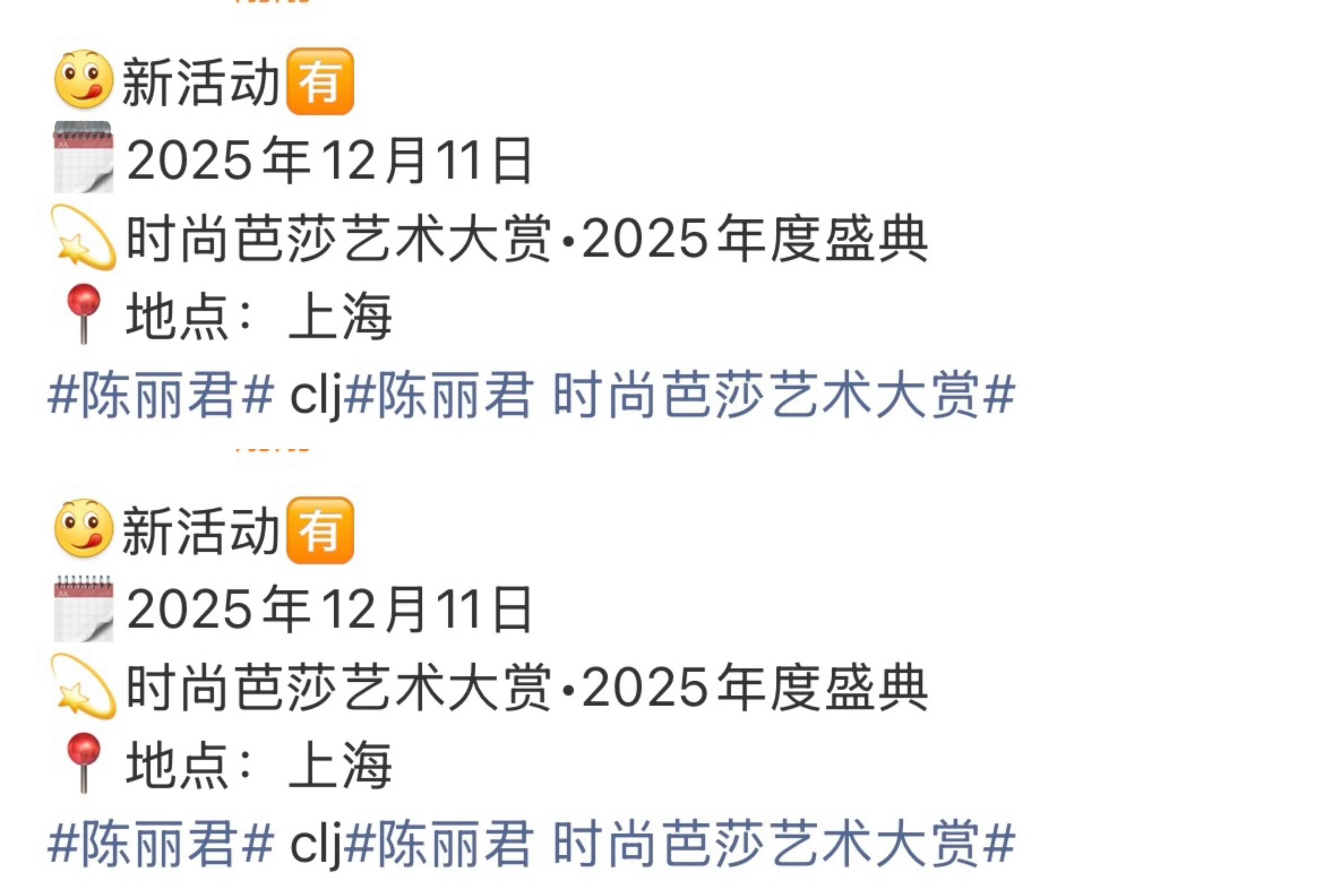 陈丽君时尚芭莎艺术大赏陈丽君确定将参加时尚芭莎艺术大赏2025年度盛典,期待新鲜