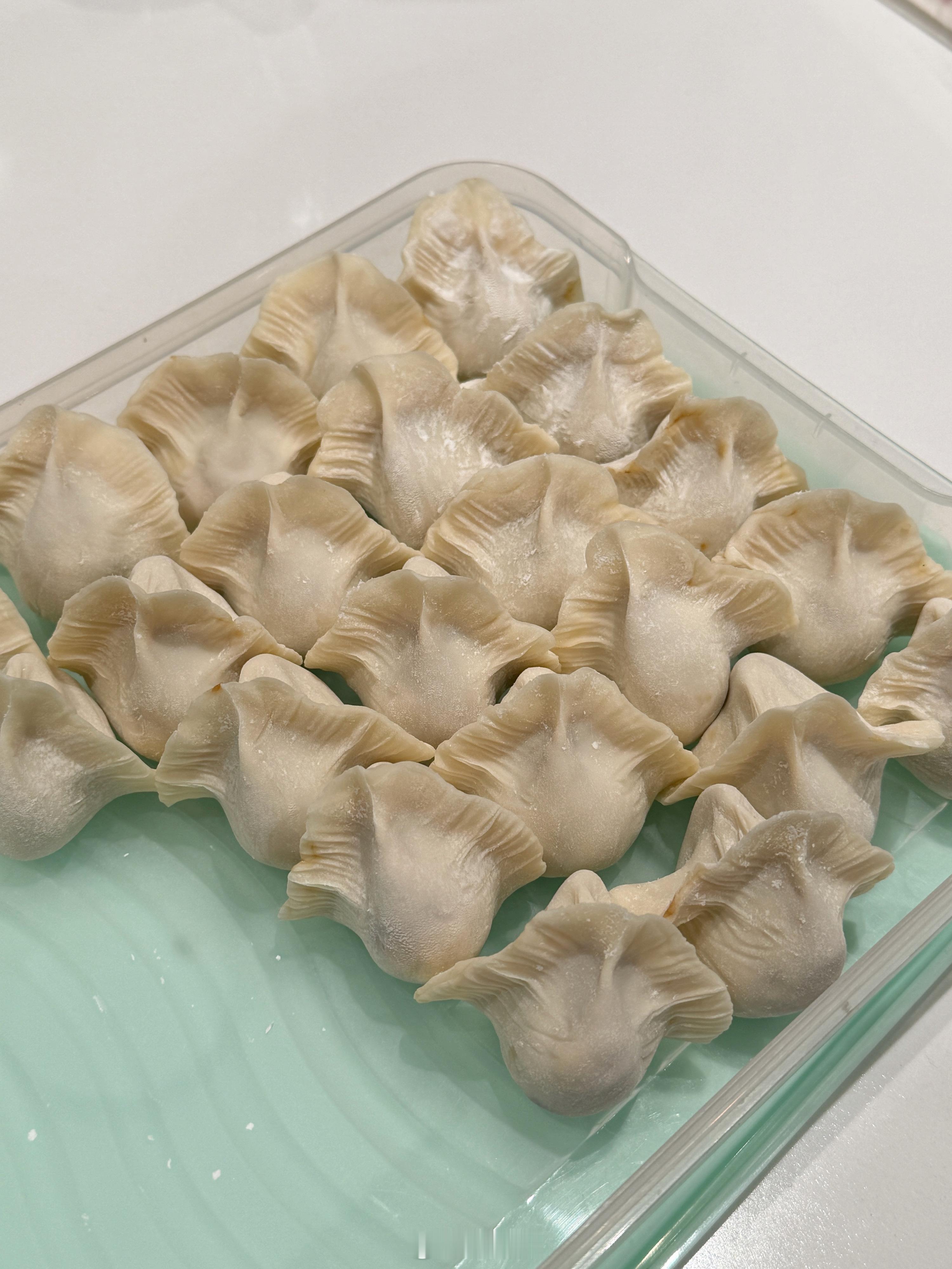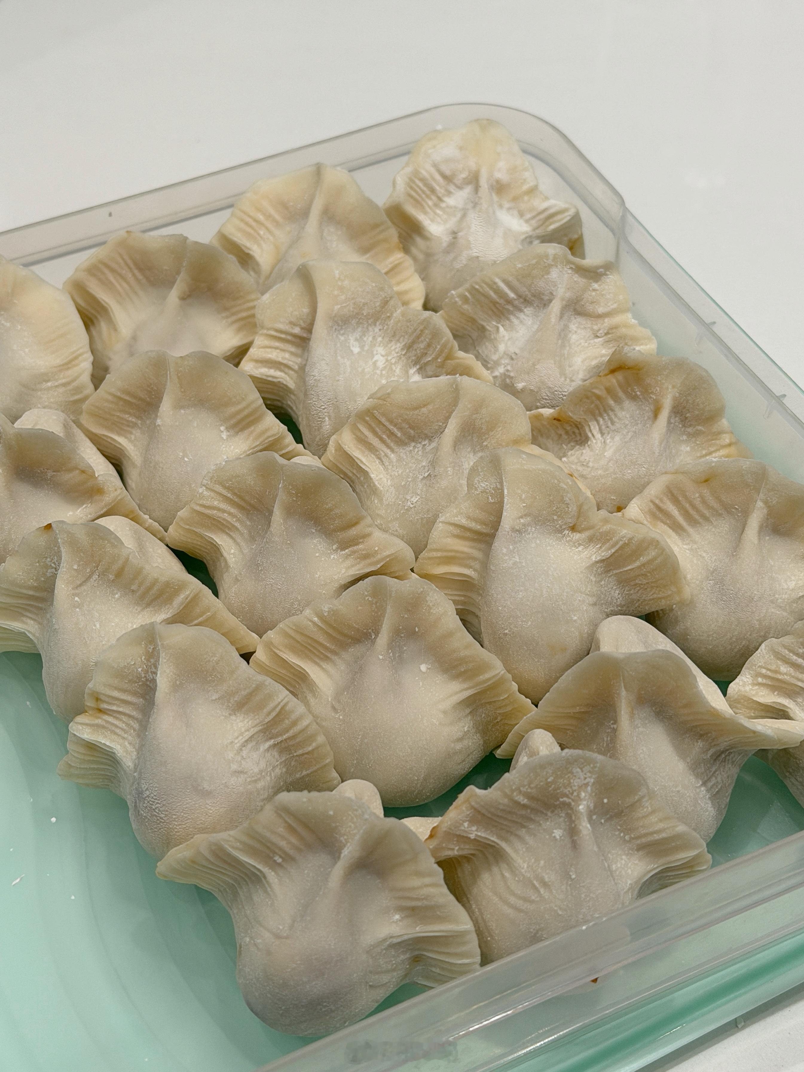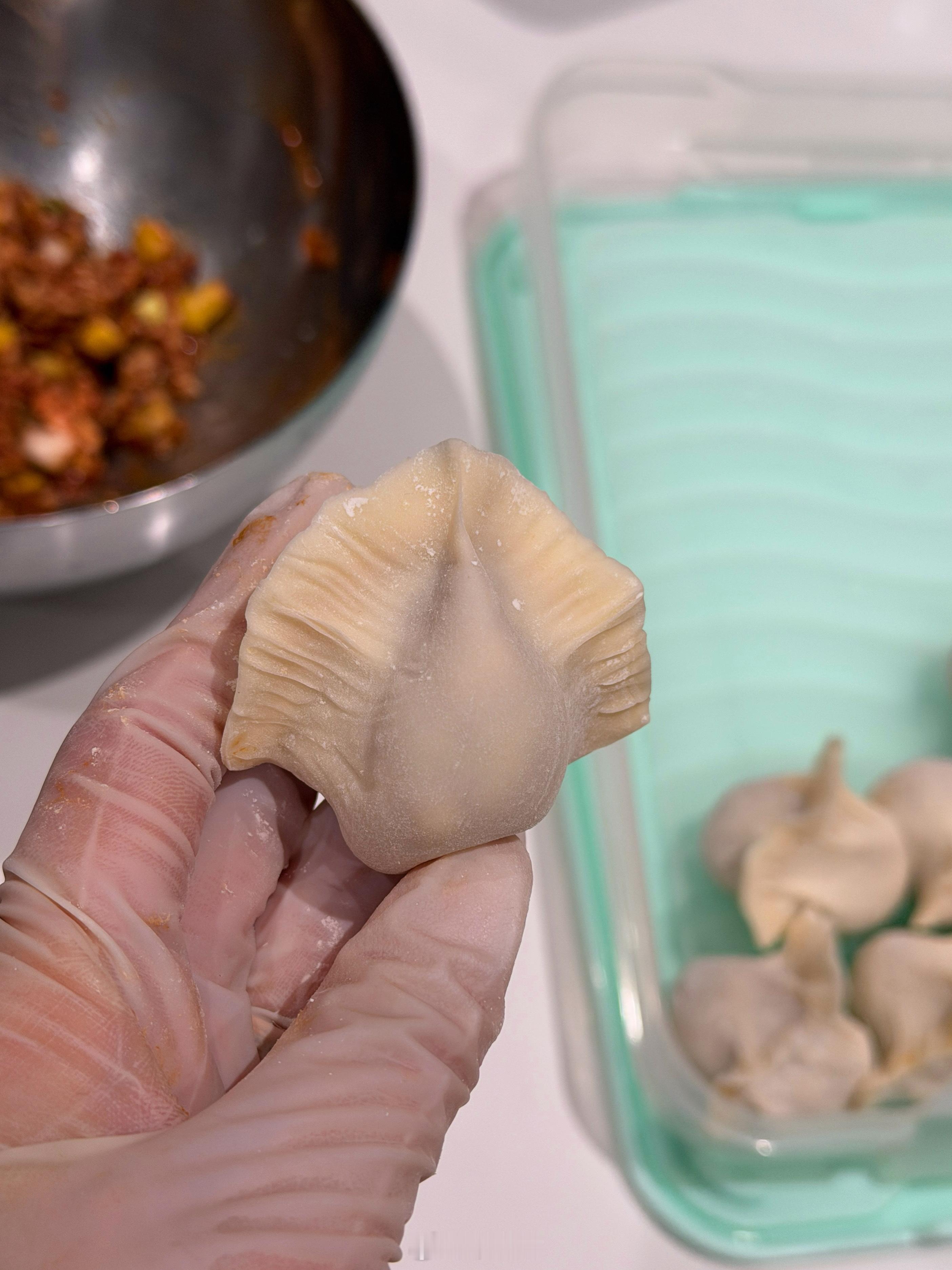 做蚂蚁上树剩了点肉馅,加了冷冻玉米粒,包成玉米猪肉馅水饺,手一滑,老抽倒多了