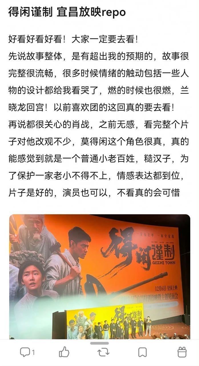 得闲谨制豆瓣开分6.9  这开分我是觉得有点可笑的,《得闲谨制》从故事到表演都挑不出大毛病,剧情台词都十分亮眼,甚至有人说是看过最有意思的战争片!现在这分数要么是有水军乱刷,要么是平台算法有问题,随意捏分也太不负责了。没看的别犹豫,这片子值得一看!