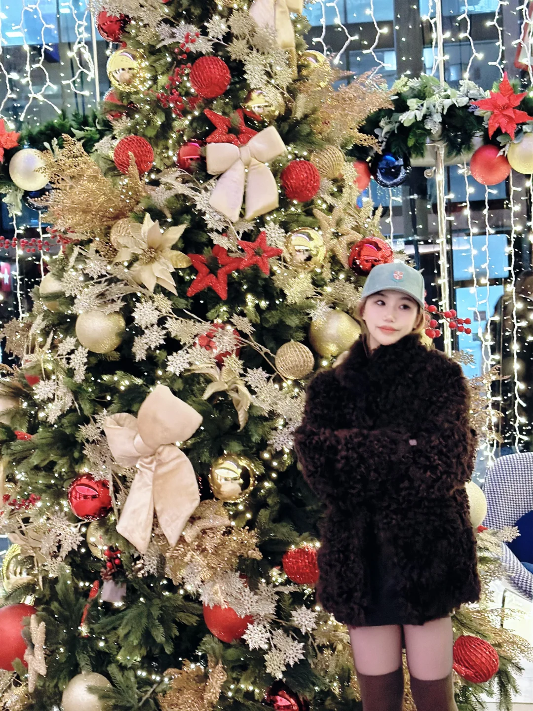 整栋楼化身「红色圣诞日历」,橱窗细节精致到失语,整点有互动灯光秀