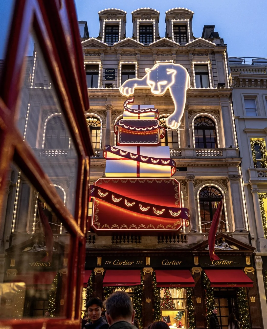 数十万颗灯泡裹住建筑,特里顿和宁芙仙女雕塑亮灯后像钻石,橱窗是「圣诞童话」主题