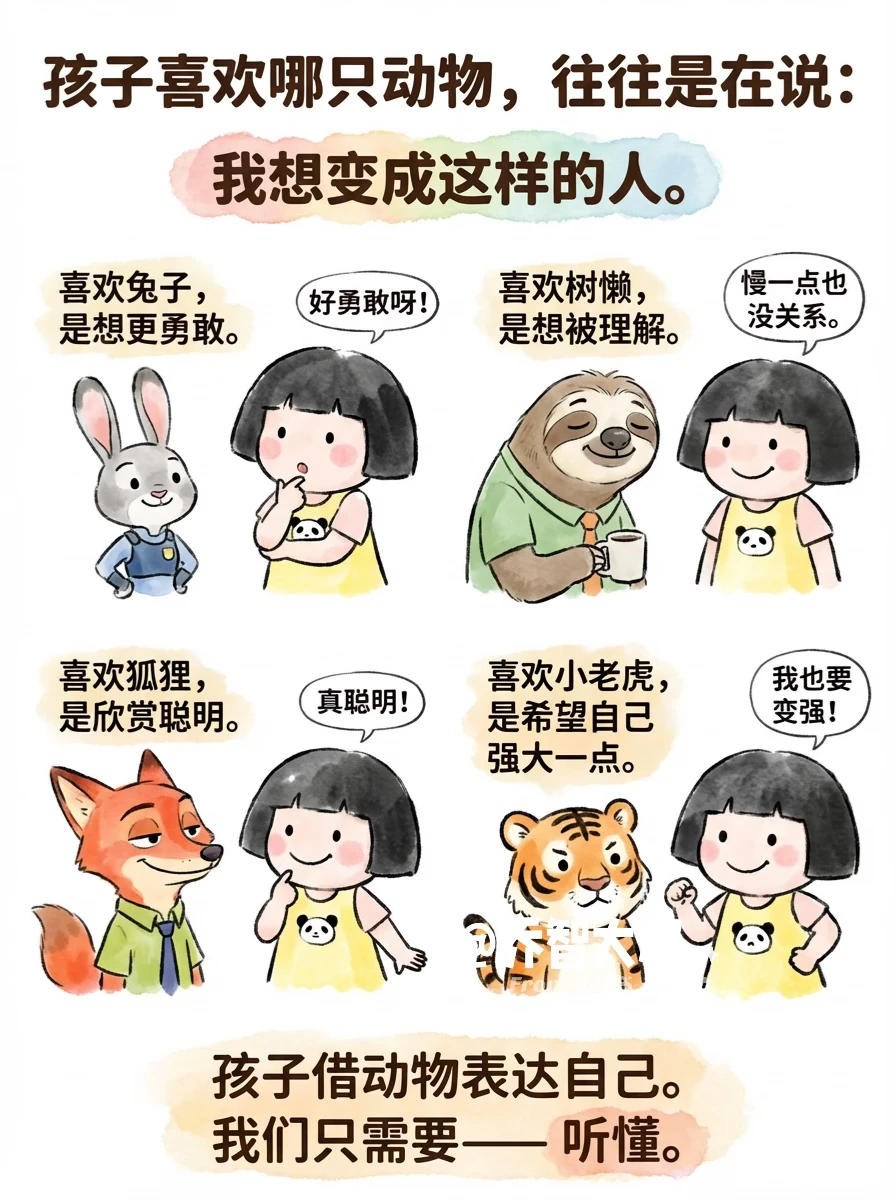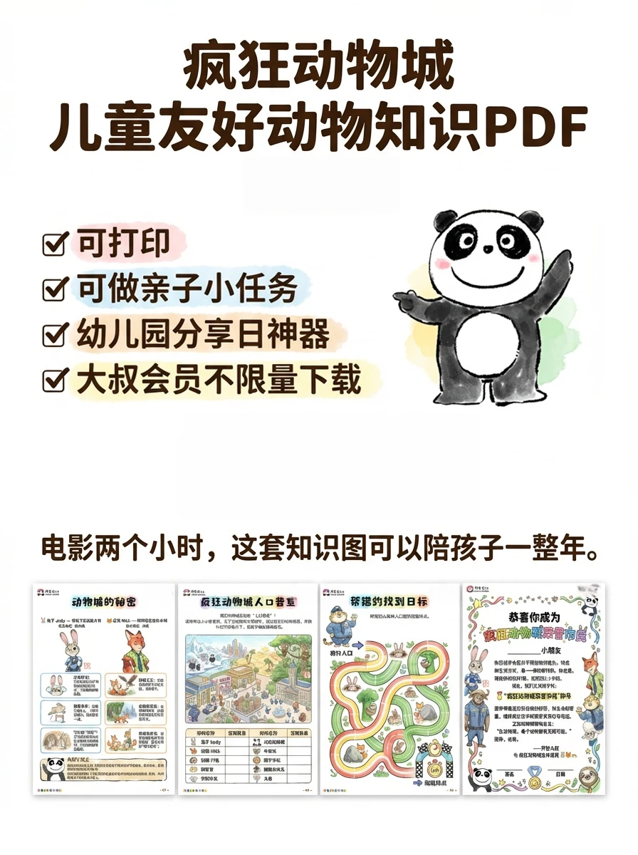 孩子喜欢《疯狂动物城》, 不是因为动物可爱, 是因为动物让他们 看见自己、学会表达、找到力量。 这一次, 我把电影里的动物 做成了孩子能懂的“一张图”: • 每种动物的本领 • 每种动物身上的性格点 • 幼儿园可以延伸的学习话题 • 可打印的家庭互动小任务 就是想让家长们更轻松, 也让孩子们把喜欢装进生活里。